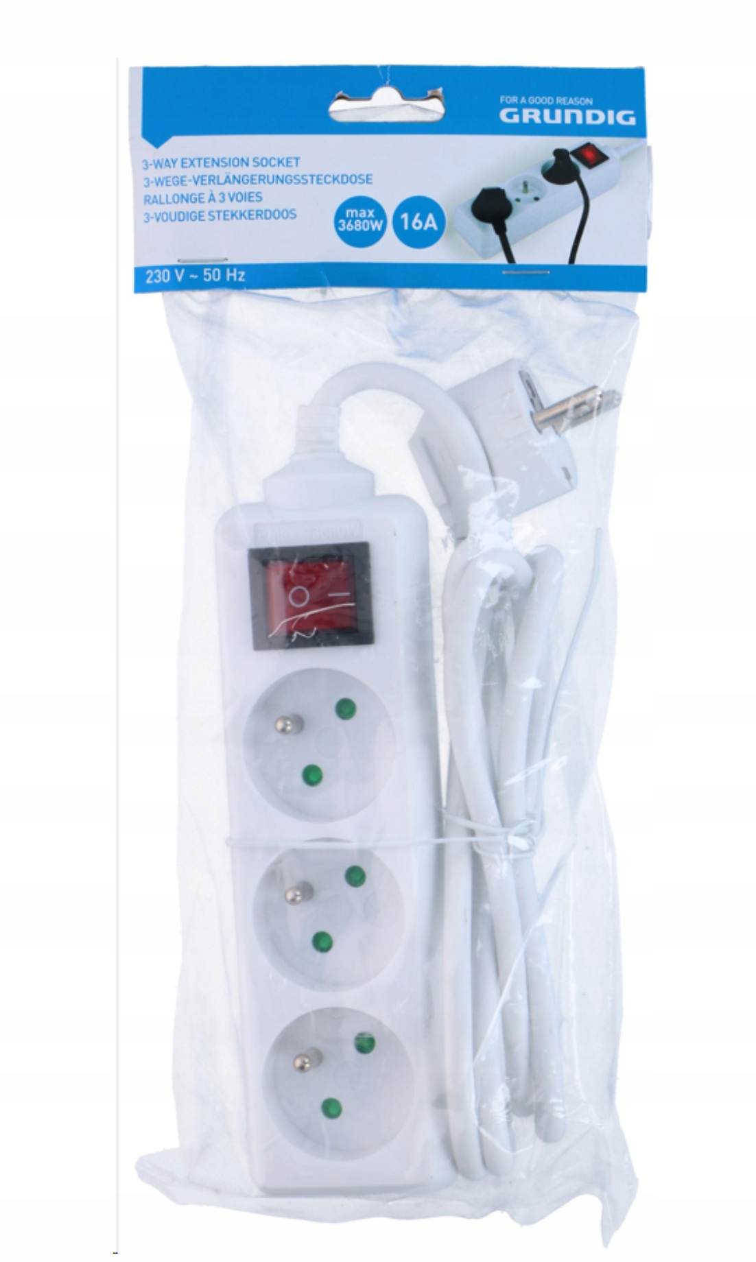 Przedłużacz z włącznikiem 3 gniazda listwa zasilająca Grundig 1,4m
