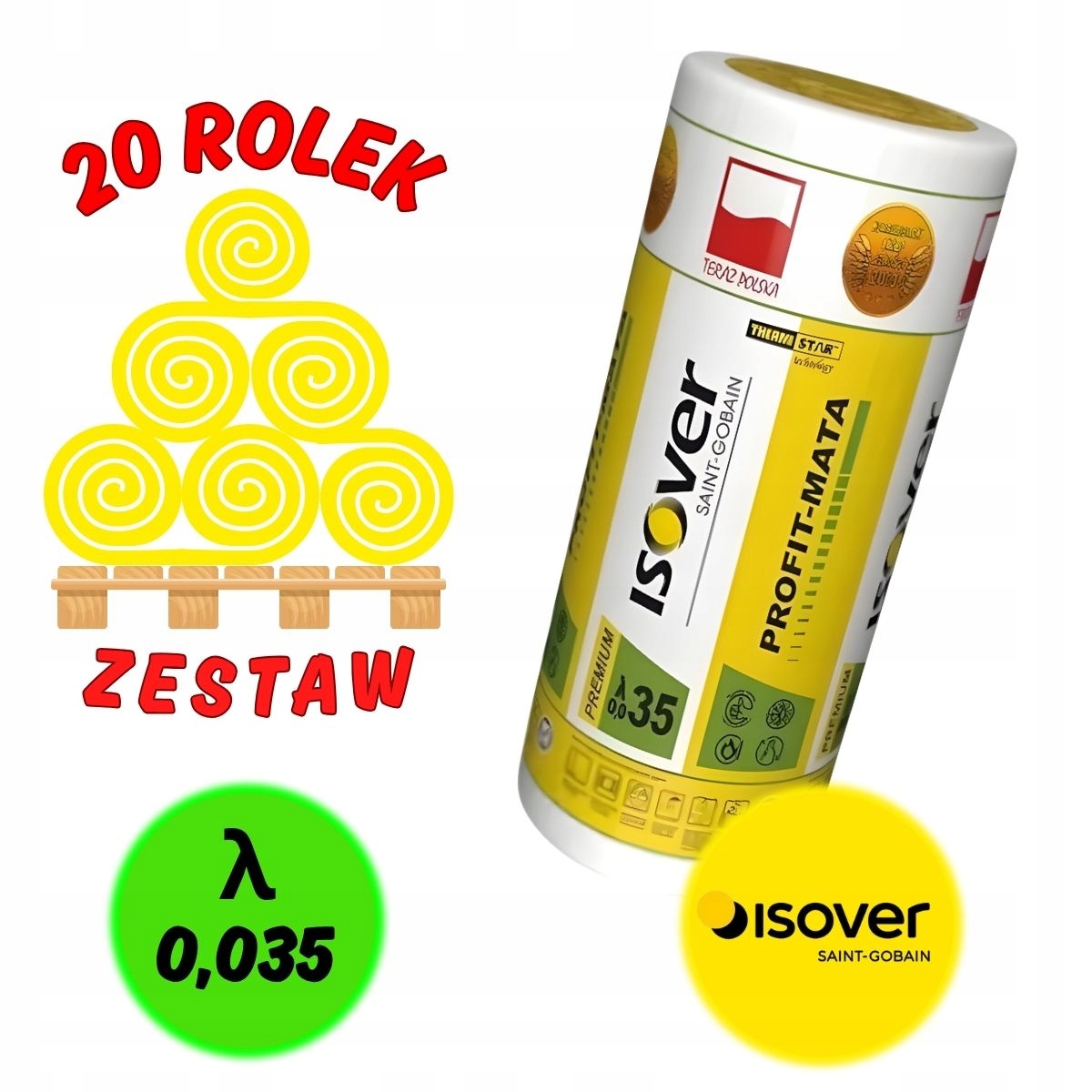 Mata z wełny mineralnej szklanej Isover Profit Mata o bardzo dobrej izolacyjności termicznej. Powinna być stosowana wszędzie tam, gdzie najważniejsze są parametry izolacyjne przergody. Współczynnik przewodzenia ciepła: 0.035 W/m*K