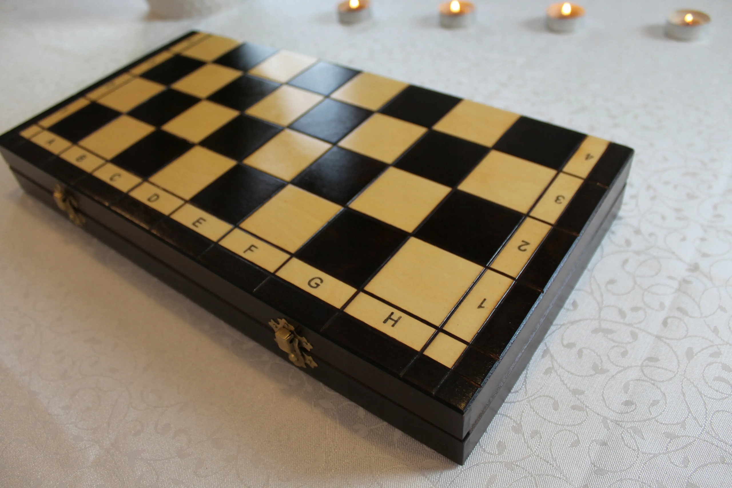 Szachy wykonano z trwałego drewna, które zostało pokryte solidną warstwą lakieru. Choć kaseta nie jest intarsjowana, a wypalana – zachowuje urok tradycyjnych szachów i jednocześnie zyskuje odporność na zarysowania oraz uszkodzenia mechaniczne. To idealne rozwiązanie dla osób, które szukają budżetowego zestawu szachowego z duszą.