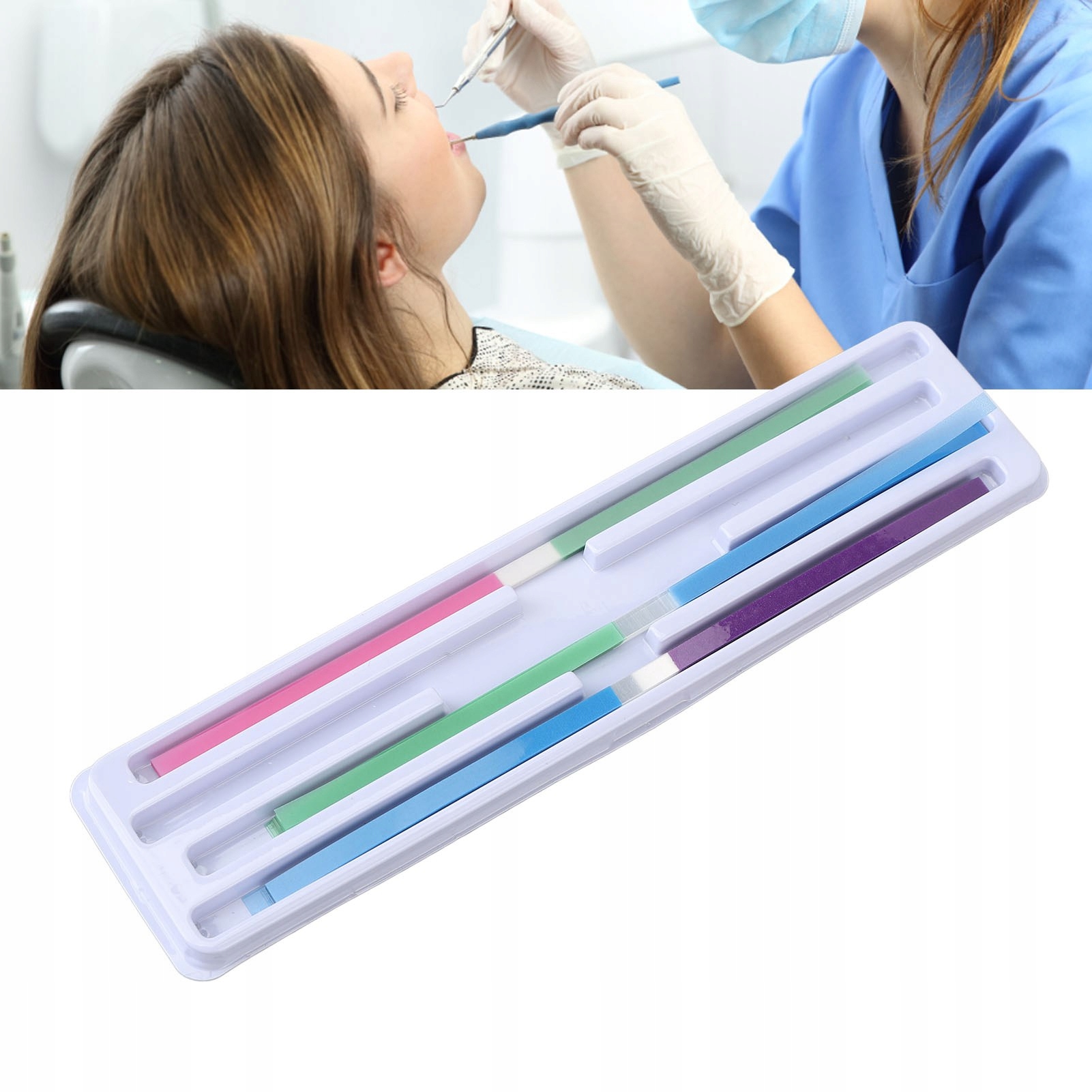 2. Łatwe wkadanie: dentystyczne paski ścierne można atwo wożyć w przestrzeń międzyzębową bez uszkadzania kontaktów, co uatwia dentystom pracę w zamkniętych ustach.