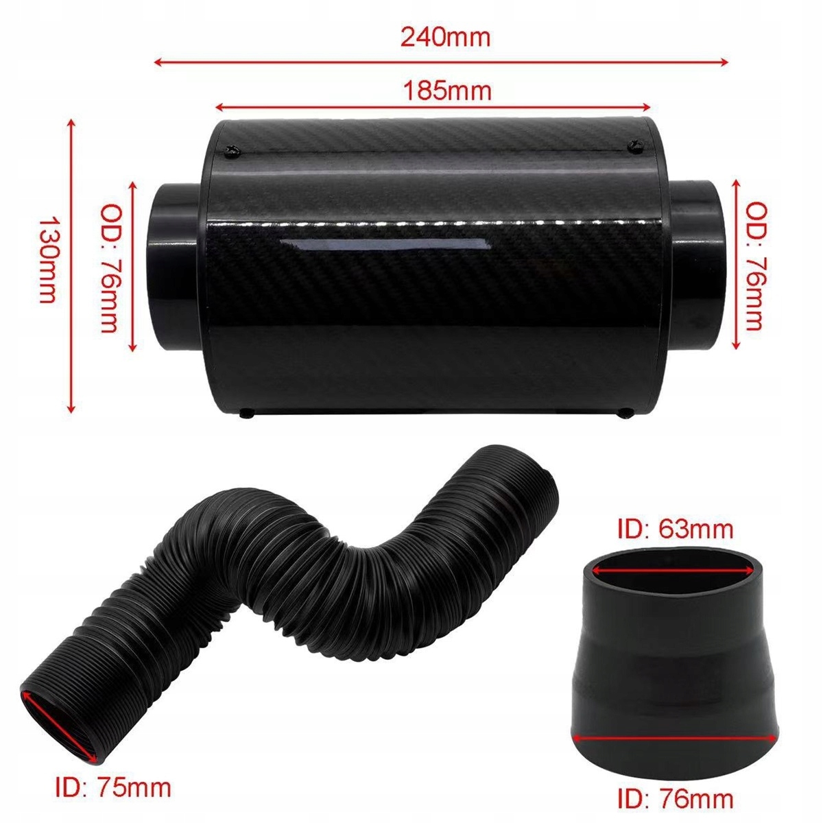 Układ Dolotowy Filtr Stożkowego Airbox – Obudowa Węglowa 76mm (Pełny Zestaw)