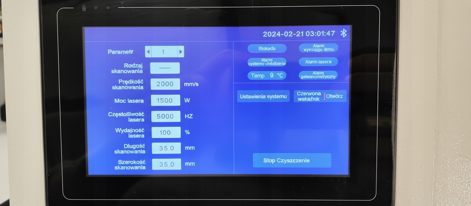 Spawarka laserowa została wyposażona w nowoczesny, dotykowy panel sterowania w języku polskim, który zapewnia pełną kontrolę nad procesem spawania.