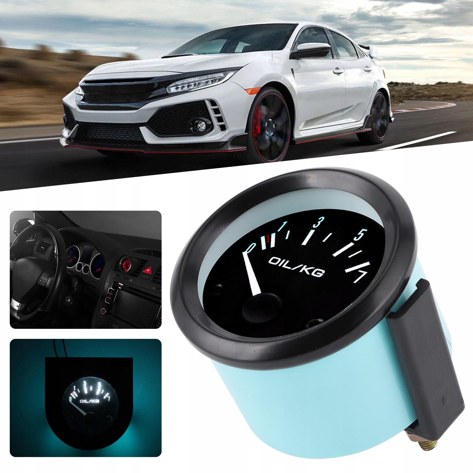 Uniwersalny miernik ciśnienia oleju 12V 07kg/cm 52mm Dia Instrument samochodowy z czujnikiem Biae świato LED