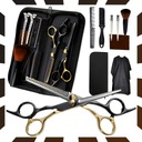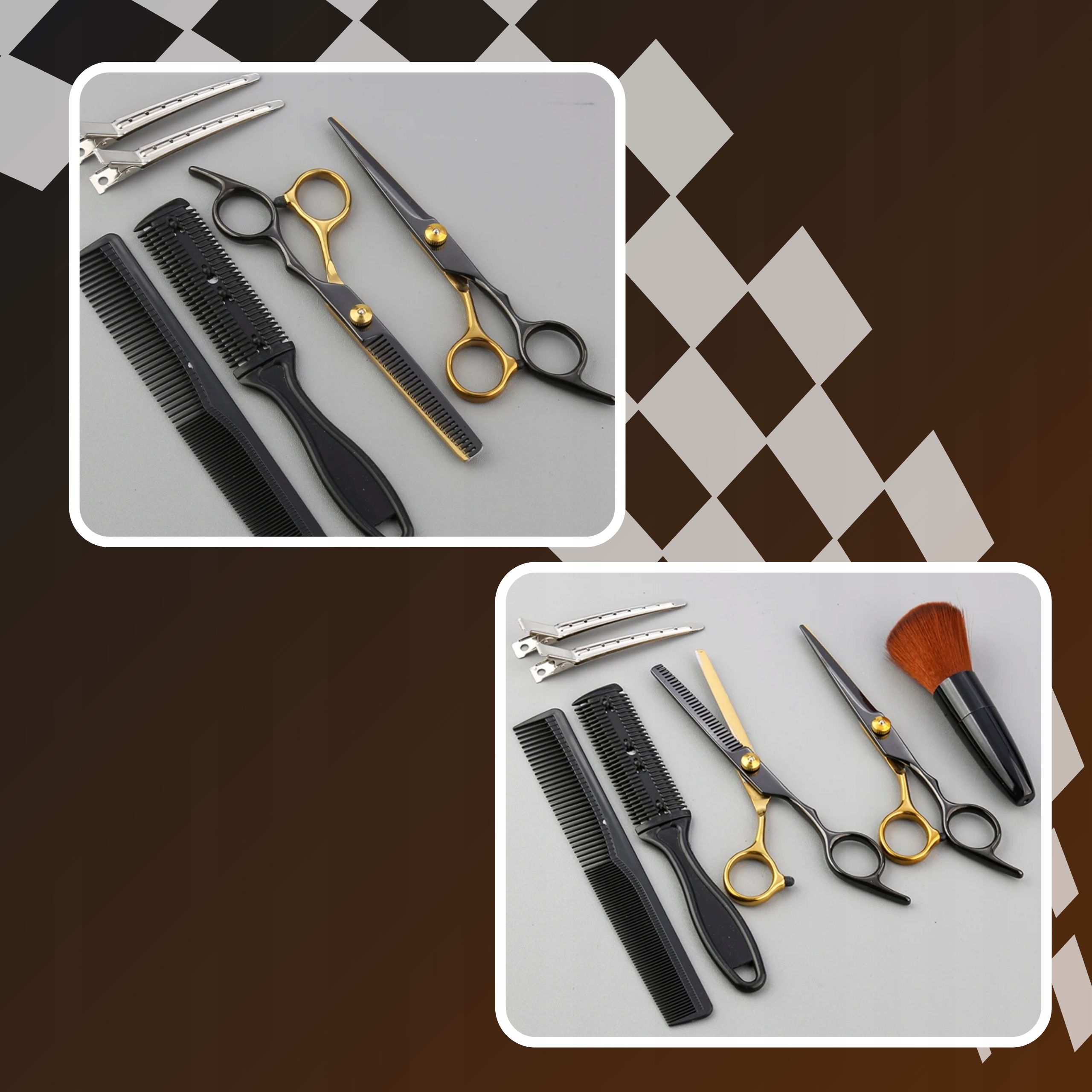 ✅ KOMPLETNY ZESTAW – zawiera nożyczki, degażówki, grzebienie, pelerynę, pędzel, etui i klipsy