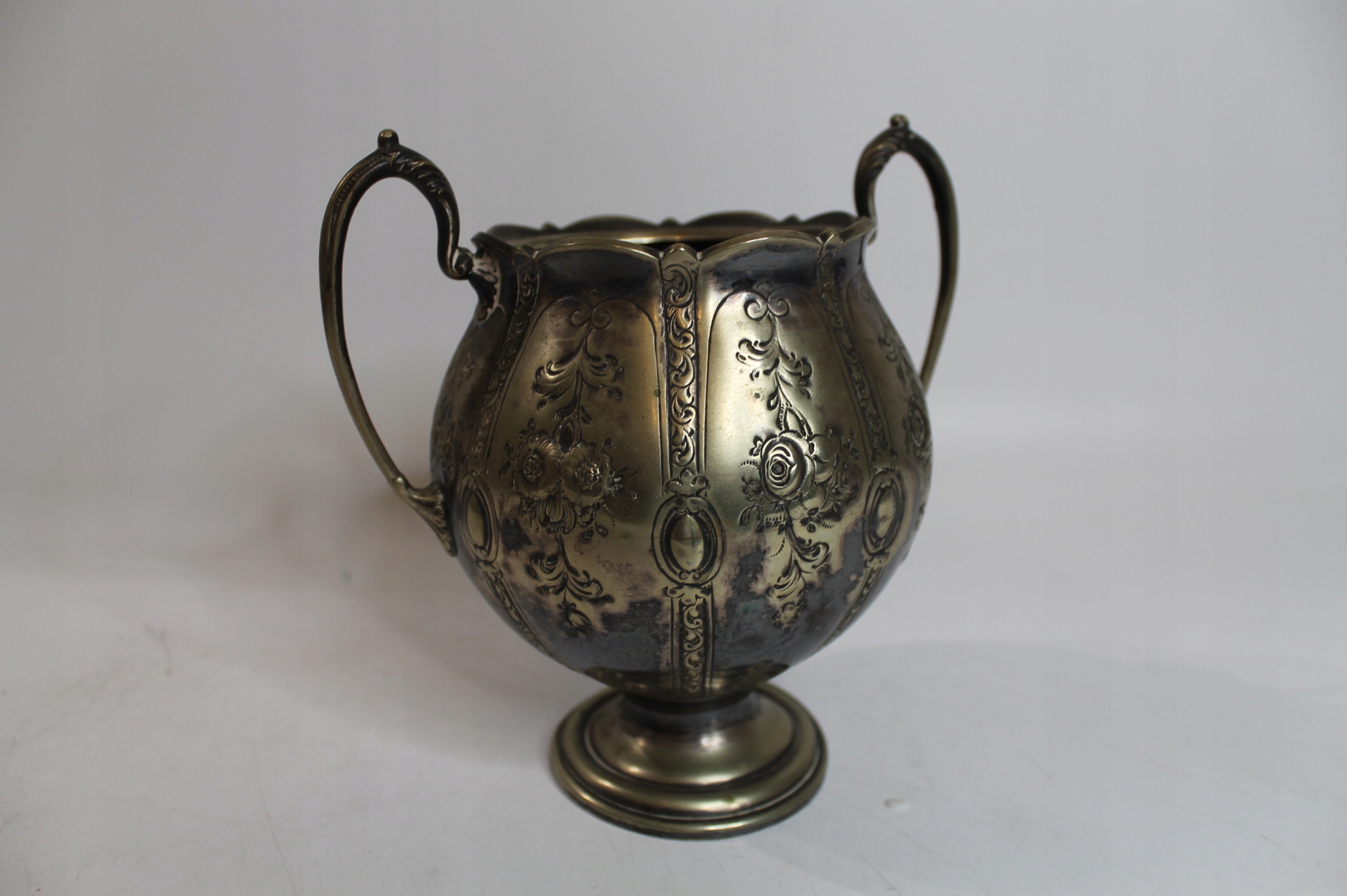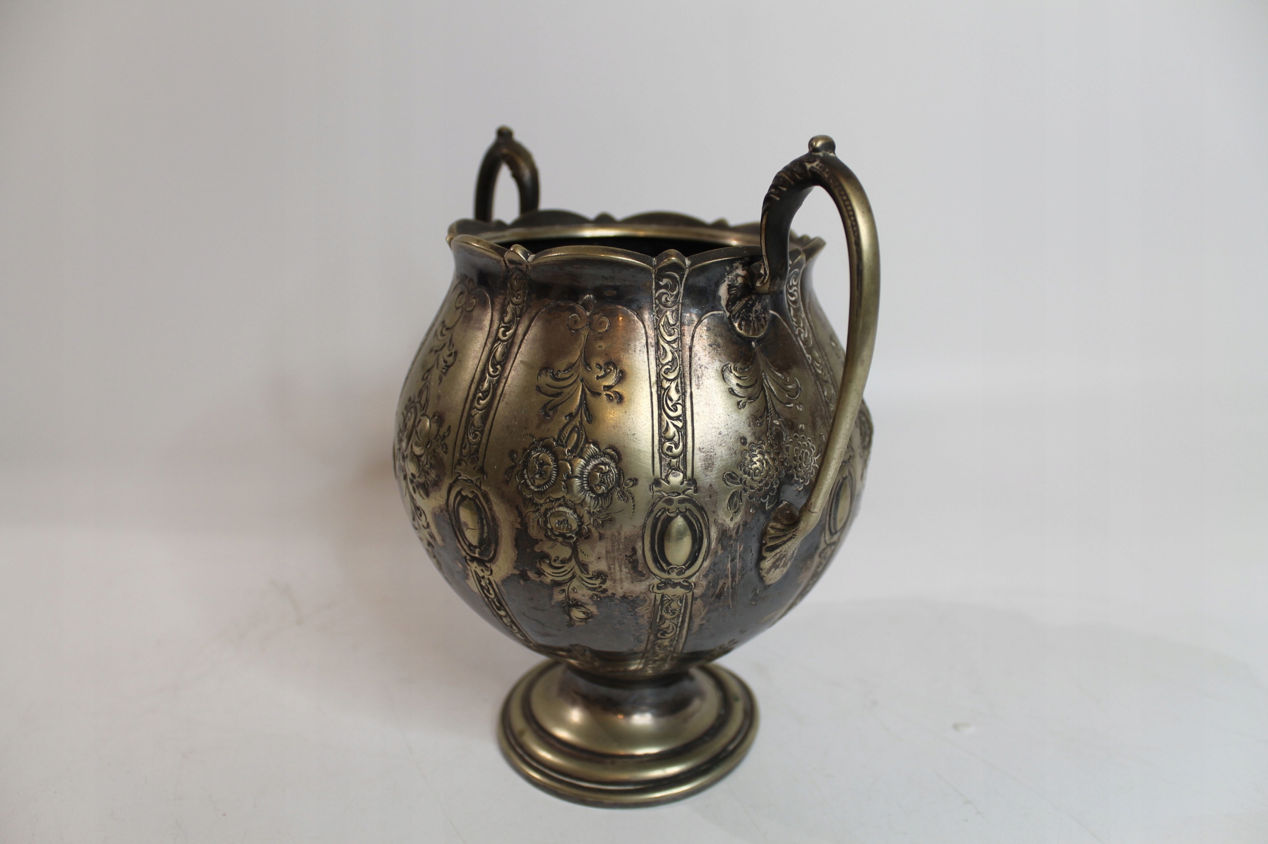 Przedmiot wykonany z mosiądzu platerowany srebrem.