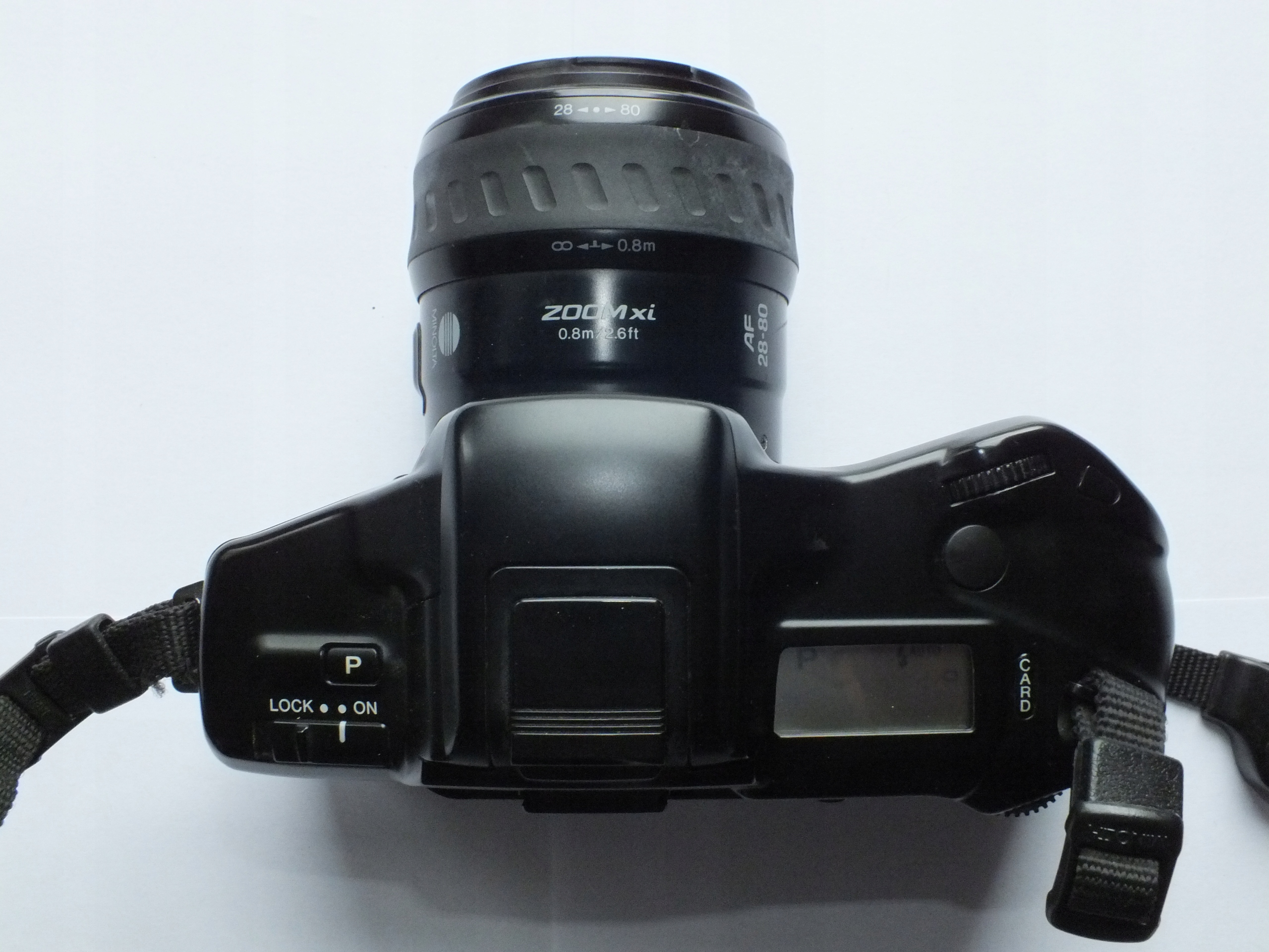 Aparat w DB stanie.Normalne ślady użytkowania.Standardowe dla starszych modeli Minolty, pęknięcie okleiny chwytu (patrz zdjęcie).Nie ma wpływu na funkcjonalność.