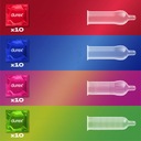 W zestawie znajdziesz wyjątkowo cienkie prezerwatywy z dodatkową ilością lubrykantu, które zapewniają maksymalne odczucie bliskości i naturalności podczas stosunku; klasyczne prezerwatywy, które oferują dodatkową ochronę, nie rezygnując przy tym z komfortu i satysfakcji; prążkowane prezerwatywy zaprojektowane z myślą o zwiększeniu przyjemności obojga partnerów, dzięki strategicznie rozmieszczonym wypustkom i prążkom oraz prezerwatywy o specjalnej strukturze, które potęgują doznania i stymulują, zapewniając niezapomniane chwile.
