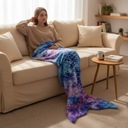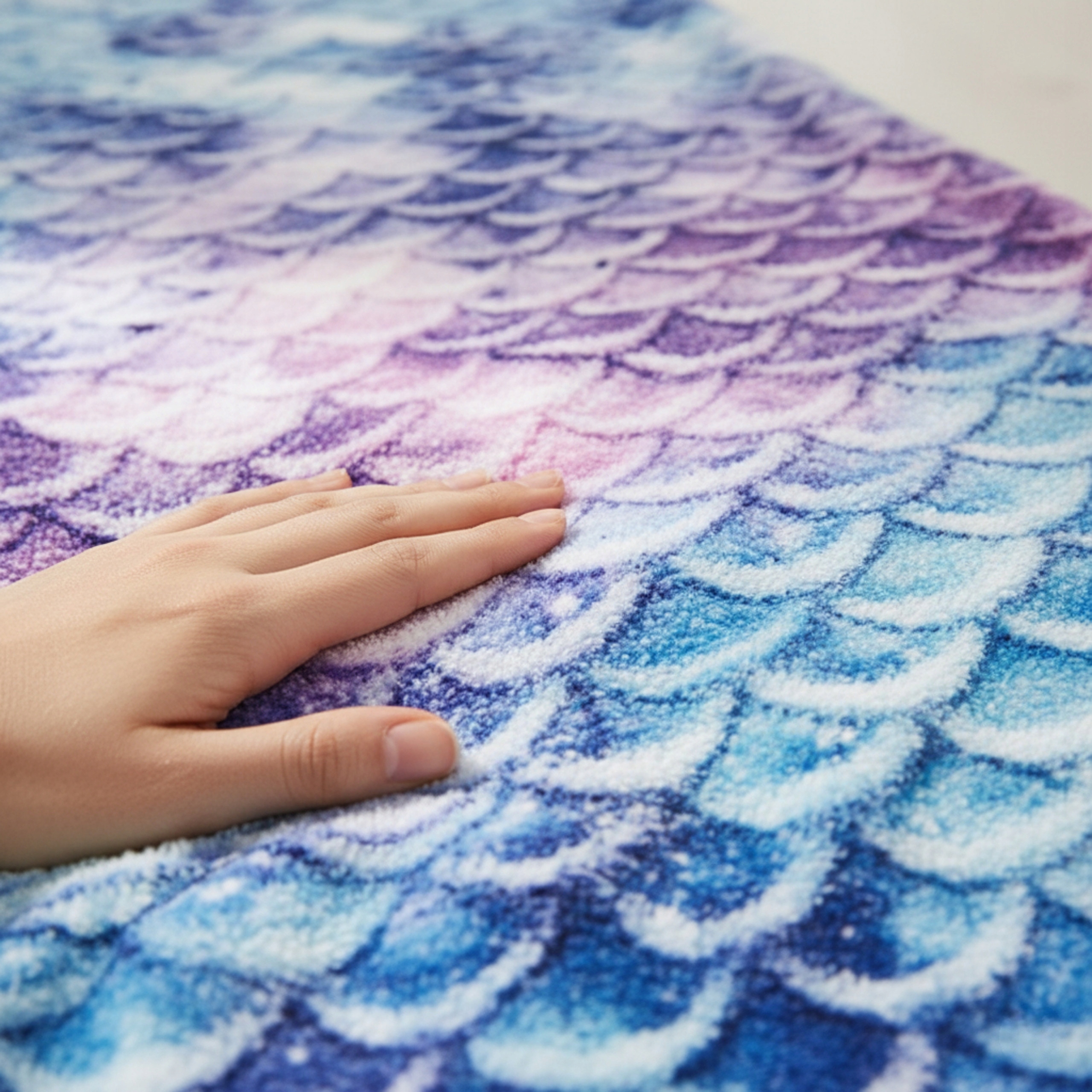 Fioletowo-różowo-niebieski wzór imitujący łuski syreny został zaprojektowany z dbałością o najmniejsze detale. Akwarelowy efekt i holograficzny połysk sprawiają, że koc wygląda jak prawdziwy ogon z bajki.
