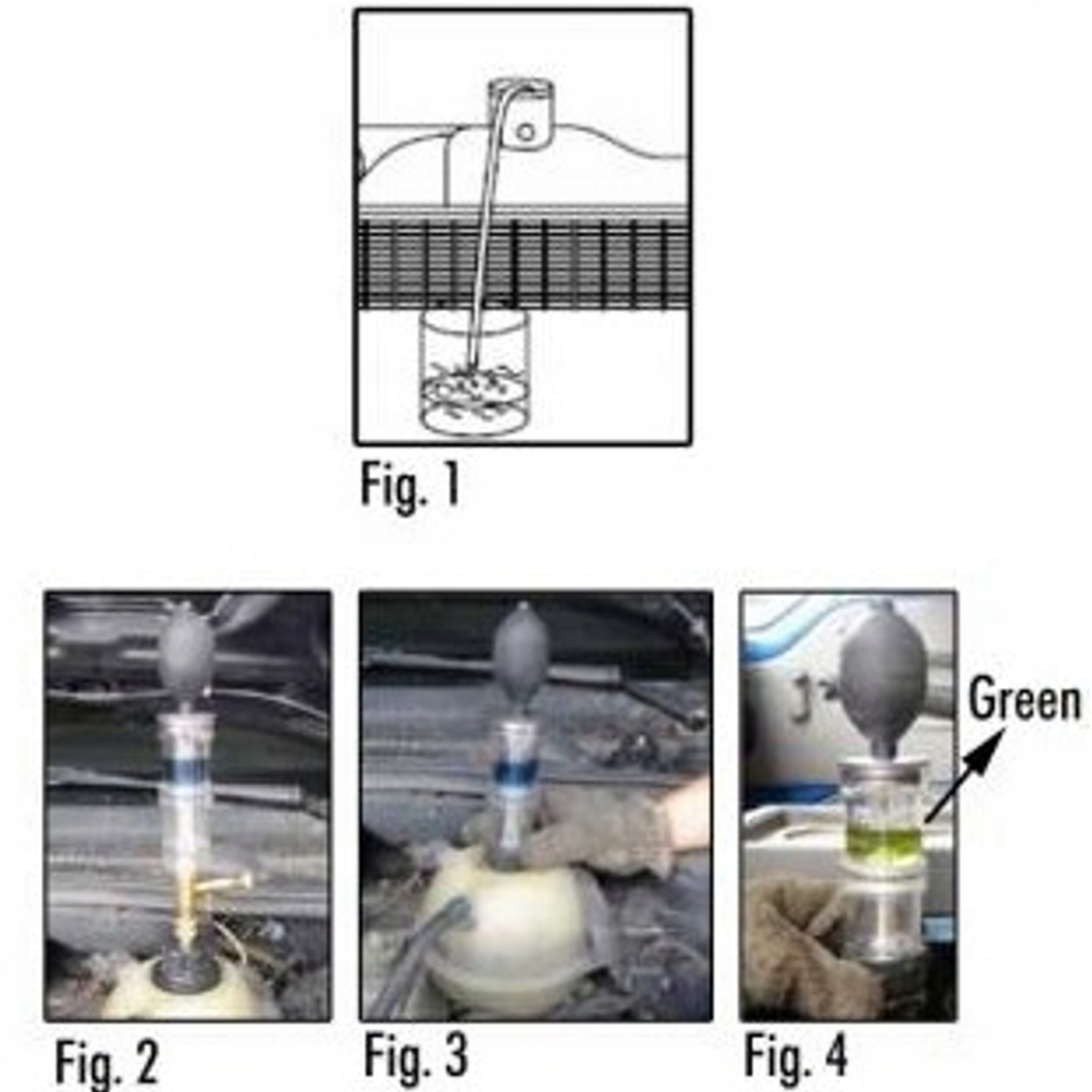 Płyn reakcyjny w komorze testera będzie reagował z gazami z układu chłodzenia i w przypadku zwiększonej zawartości CO2 zmieni barwę.