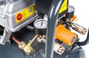 Urządzenie posiada 2 wyjścia na europejskich szybko-złączach standaryzowanych "EURO" jedno z wyjść jest regulowane za pomocą zintegrowanego reduktora pokazując na manometrze ciśnienie robocze. Drugie wyjście podaje pełne ciśnienie ze zbiornika, manometr pokazuje wtedy aktualne ciśnienie w zbiorniku.