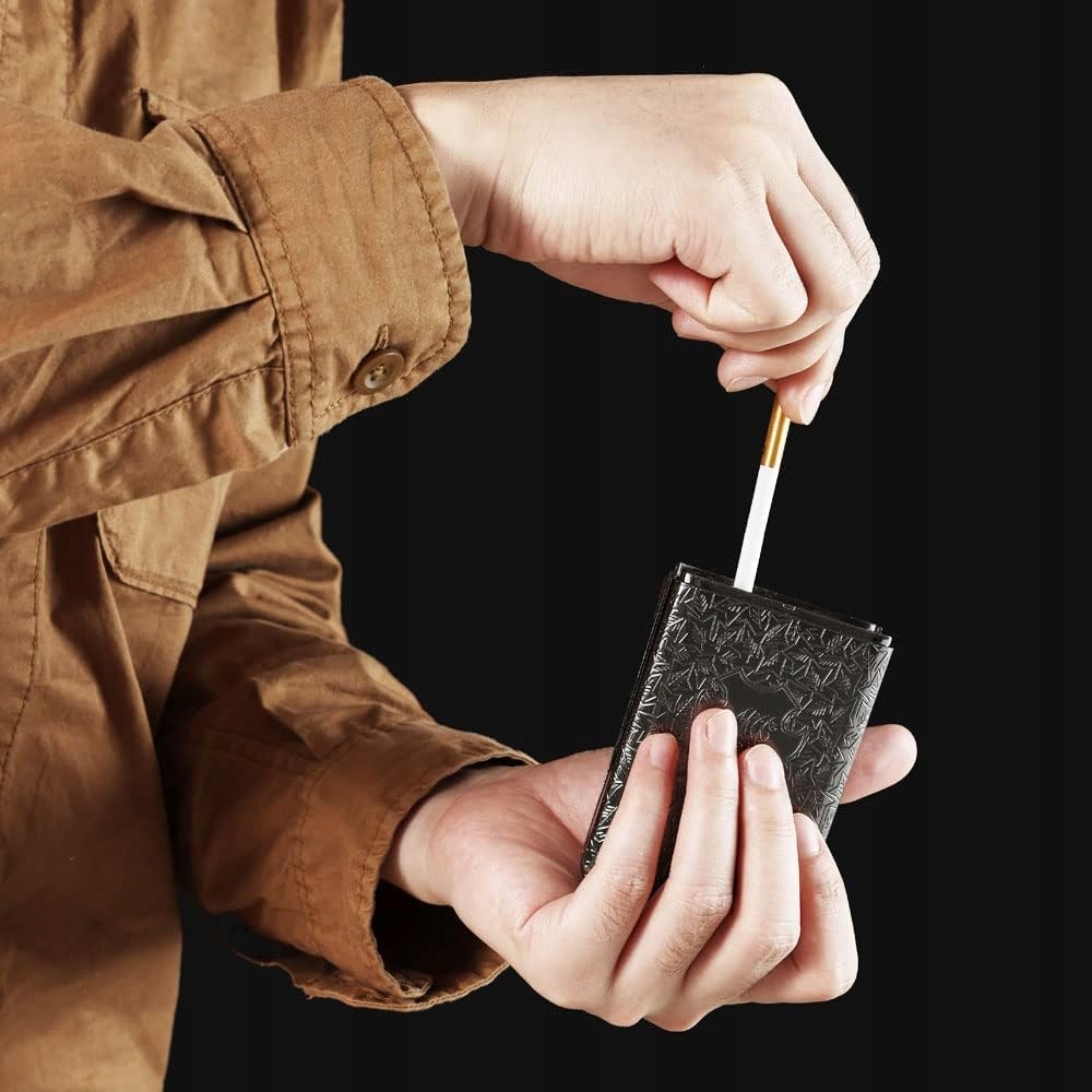 Портсигар имеет конструкция пружинной кнопки, которая позволяет открывать и закрывать портсигар одной рукой. В то же время сигаретные зажимы с обеих сторон сигаретной коробки могут эффективно предотвращать сигарета выскальзывает или теряется, когда вы открываете сигаретную коробку.