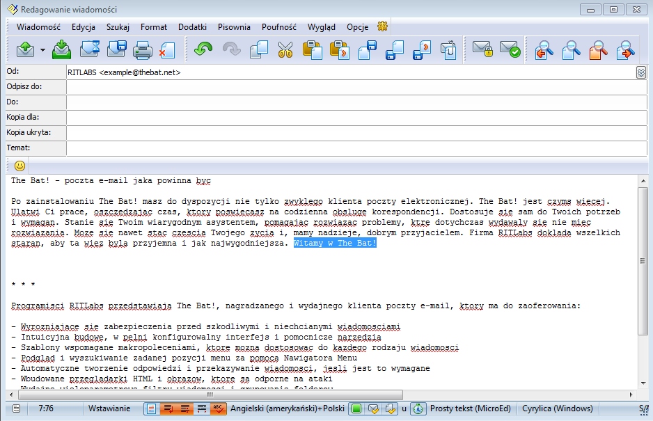 Program The Bat! powstał, aby zabezpieczyć Twoją korespondencję elektroniczną przed kradzieżą danych i dostępem osób trzecich. The Bat! Z The Bat! będziesz niezależny od internetowych i globalnych dostawców usług poczty elektronicznej, którzy utrzymują twoje wiadomości w chmurze. Program The Bat! jest w stanie obsługiwać i przechowywać nieograniczoną liczbę wiadomości.