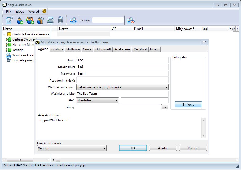 The Bat! używa własnej książki adresowej, która nie jest związana z książką adresową systemu Microsoft Windows. Książka adresowa systemu Microsoft Windows, która jest używana w program Microsoft Outlook, Outlook Express i innych, jest głównym celem ataków wirusowych. Wirusy wyciągają adresy z książki adresowej w celu dalszego rozpowszechniania w Internecie.