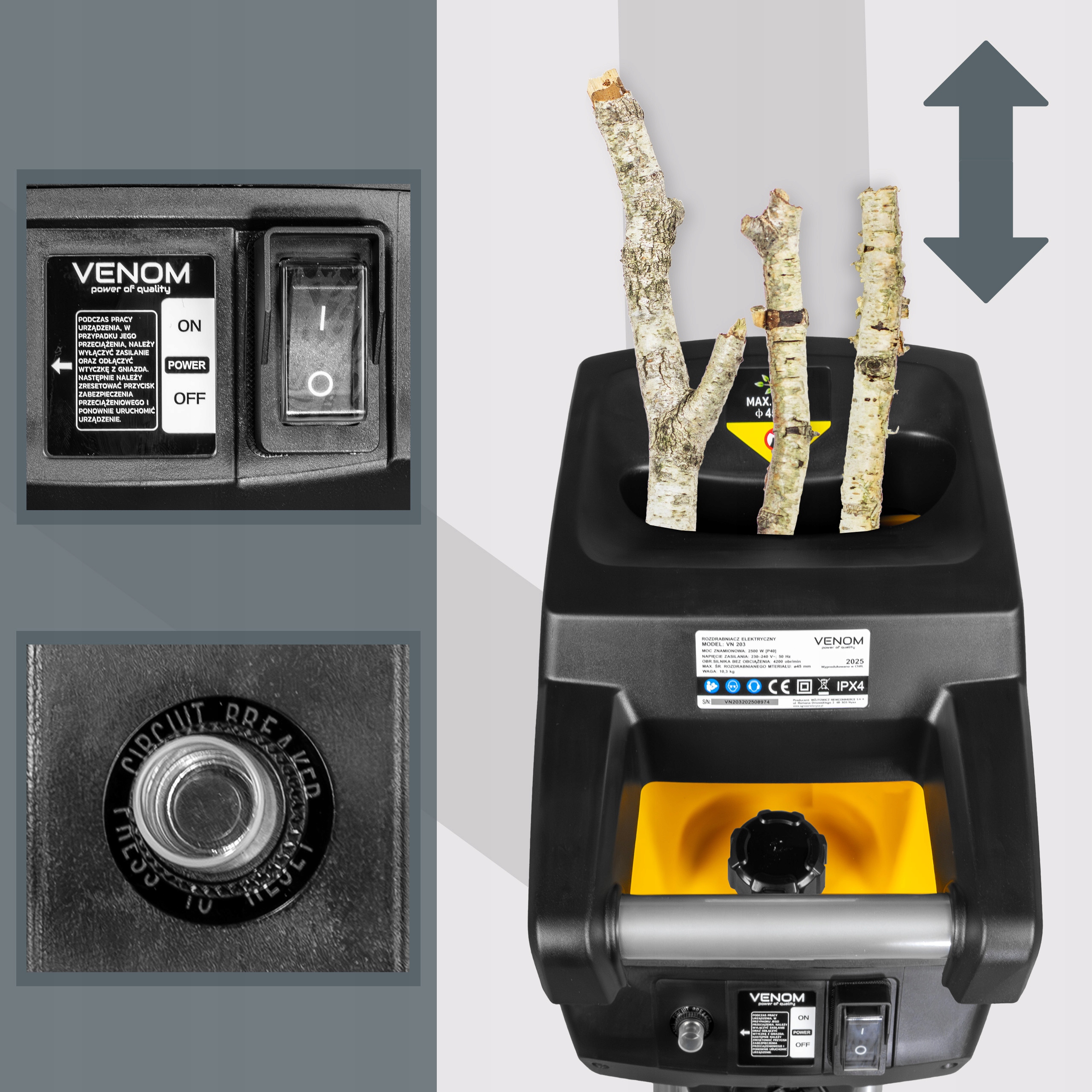 Zależy nam, abyś w prosty i szybki sposób poznał najważniejsze atuty naszego rozdrabniacza VENOM. Poniżej przedstawiamy kluczowe cechy i funkcje, które sprawiają, że nasze urządzenie wyróżnia się na tle konkurencji.