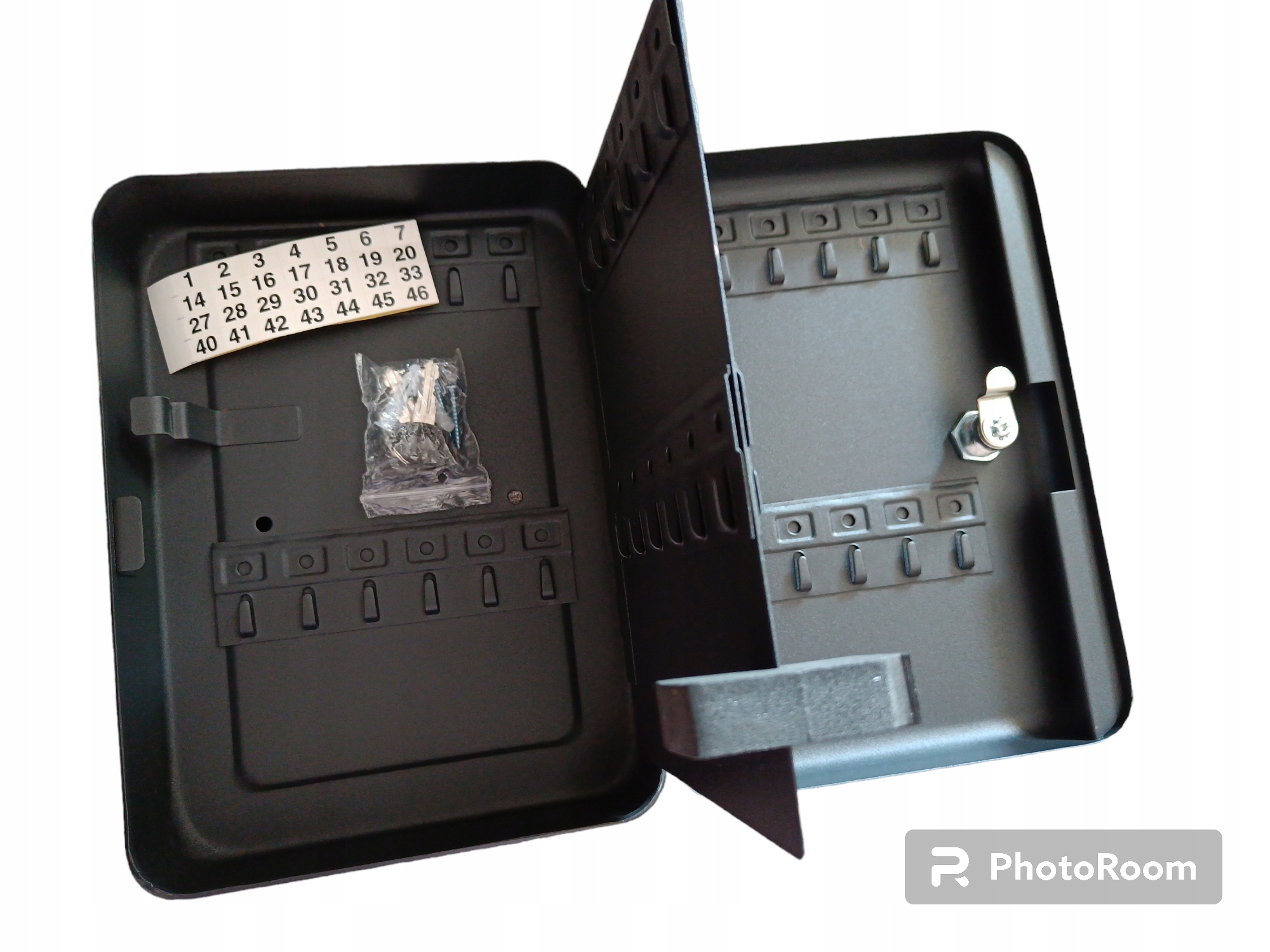 Na 48 kluczy: do uporządkowanego i bezpiecznego przechowywania do 48 kluczy. Zawiera 48 haczyków na klucze i 48 breloczków do kluczy w różnych kolorach