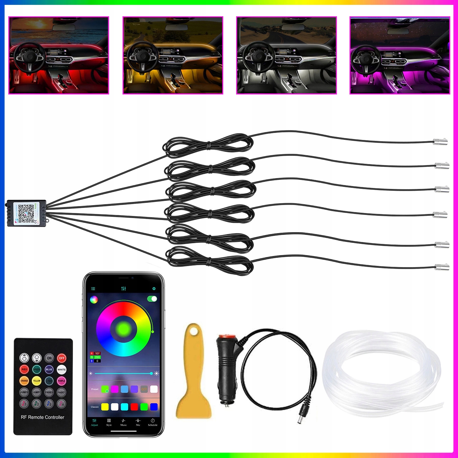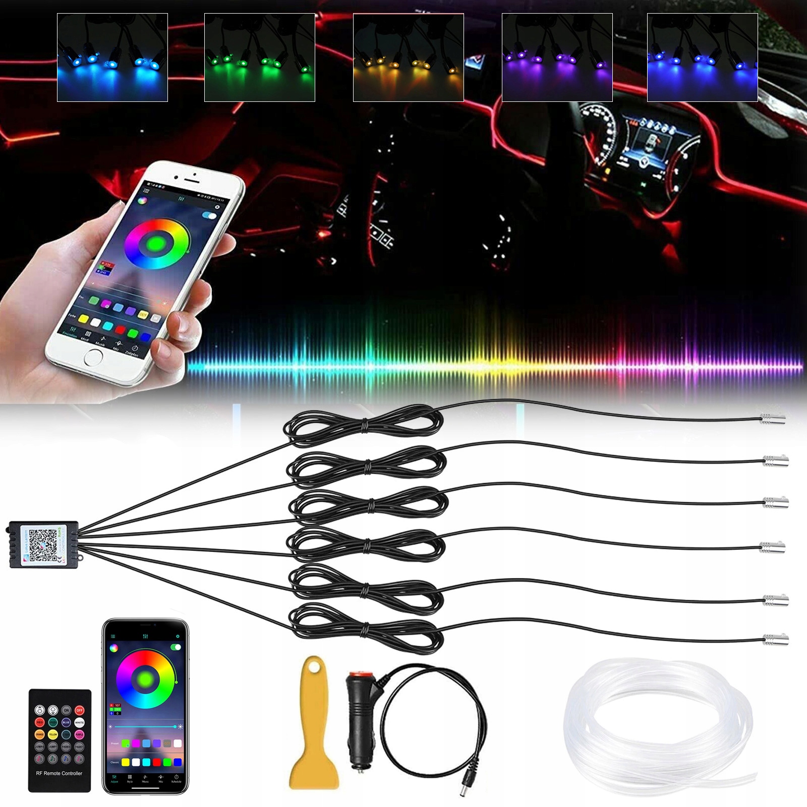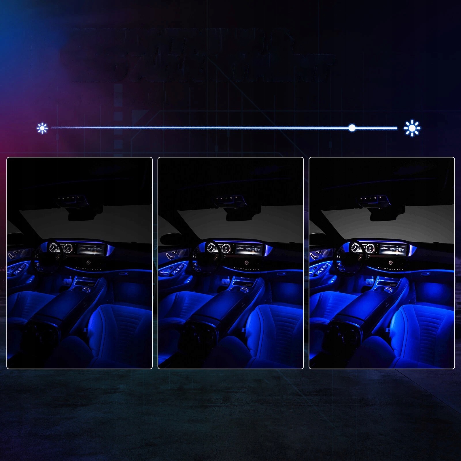 🌈Aktywne efekty dźwiękowe:System oświetlenia wnętrza samochodu LED jest wyposażony w czujniki dźwięku, które umożliwiają synchronizację świateł LED z rytmem muzyki. Taśma LED podąża za rytmem i dostosowuje miganie do intensywności dźwięku.