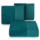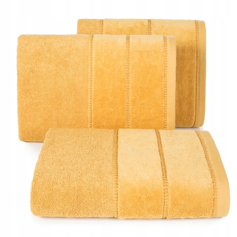 Komplet ręczników z ozdobną bordiurą w pasy kolekcji MARI o gramaturze 500gsm, która zapewnia wysoki komfort użytkowania, doskonałą chłonność oraz szybkie schnięcie. Ręczniki są w 100% bawełniane a część ozdobna składa się w 60% z bawełny oraz 40% poliestru.