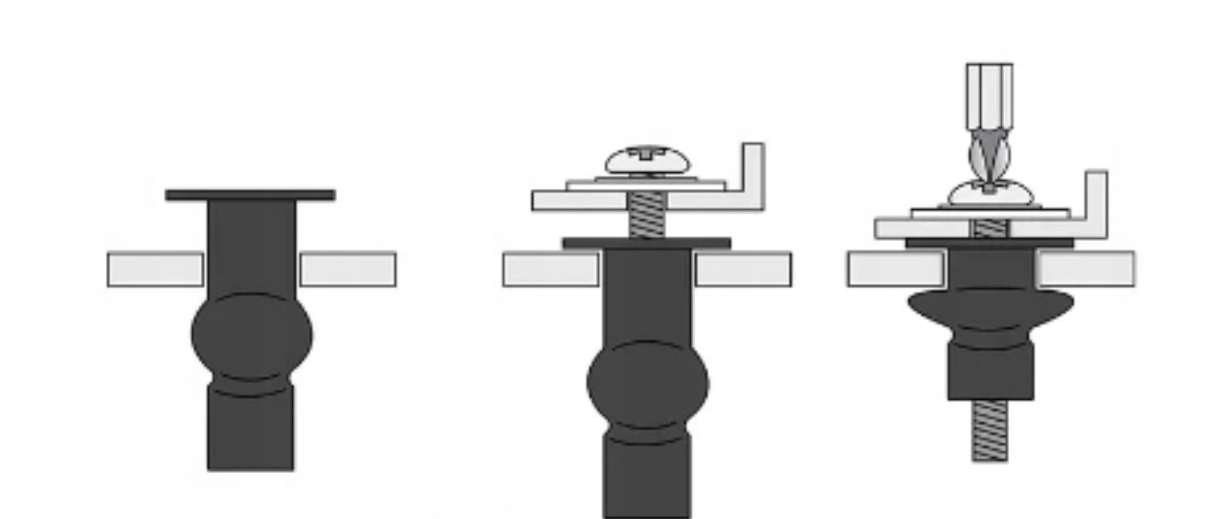 В комплект входят удобные и максимально быстрые в установке дюбели, затягиваются только сверху. Благодаря такому применению, вам больше не нужно гимнастика при сборке доски. Просто надавите на штифты сверху, затяните их и конец!