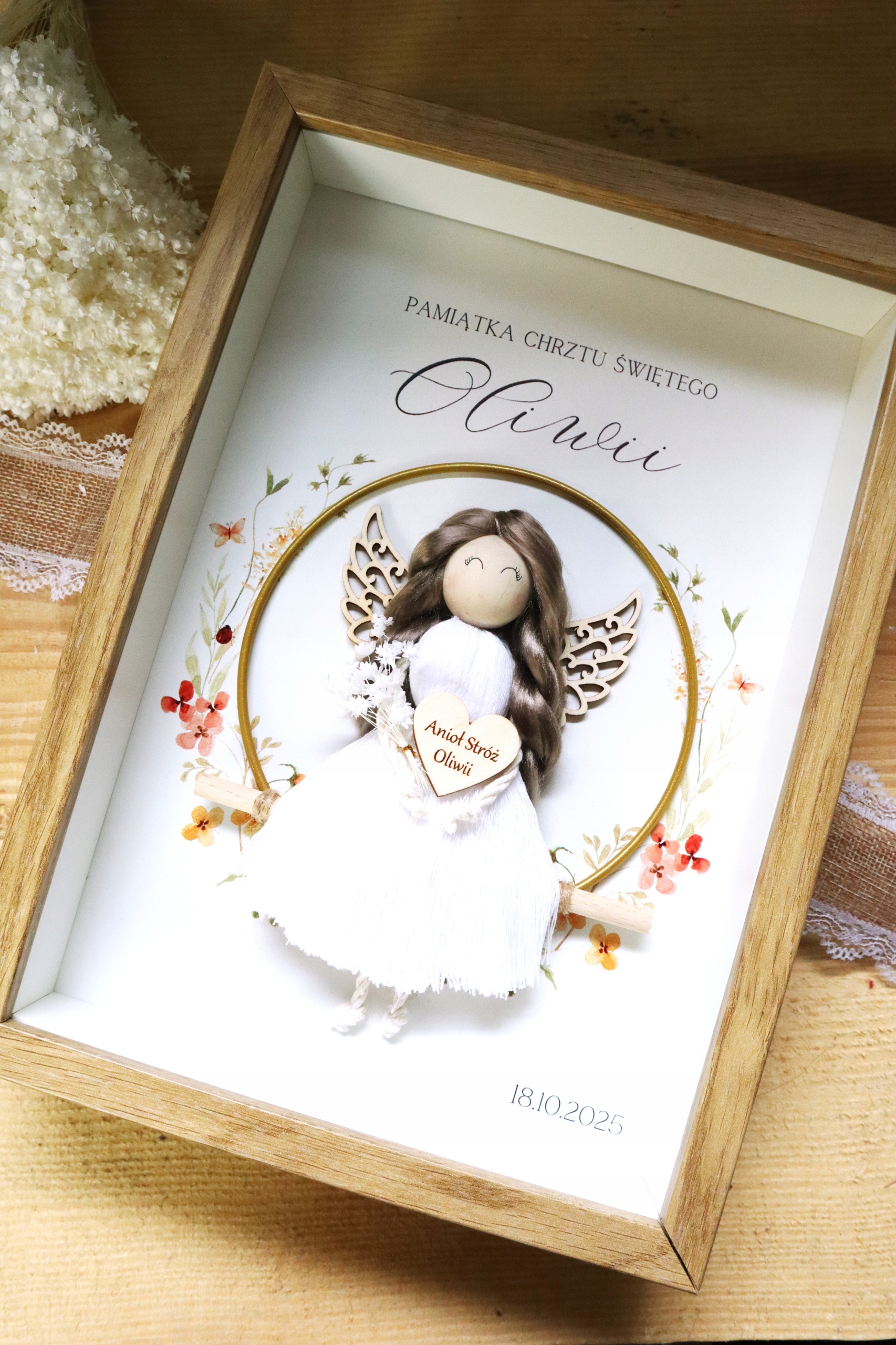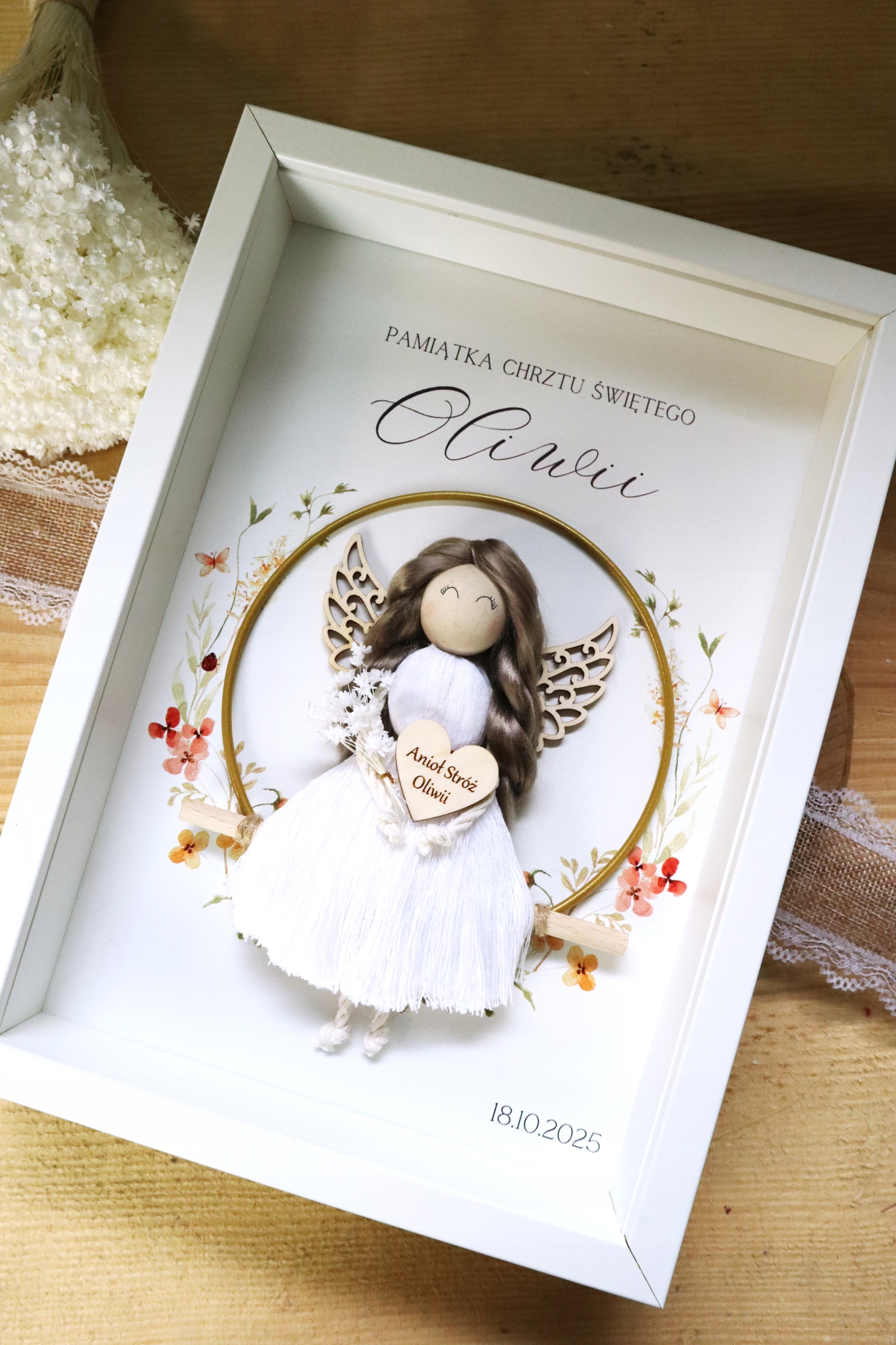 W przypadku braku informacji o kolorze ramki i zmianach w wyglądzie aniołka zamówienie zostanie przygotowane przy użyciu BIAŁEJ ramki z białym tłem i takiego aniołka jak widoczny jest na zdjęciach.