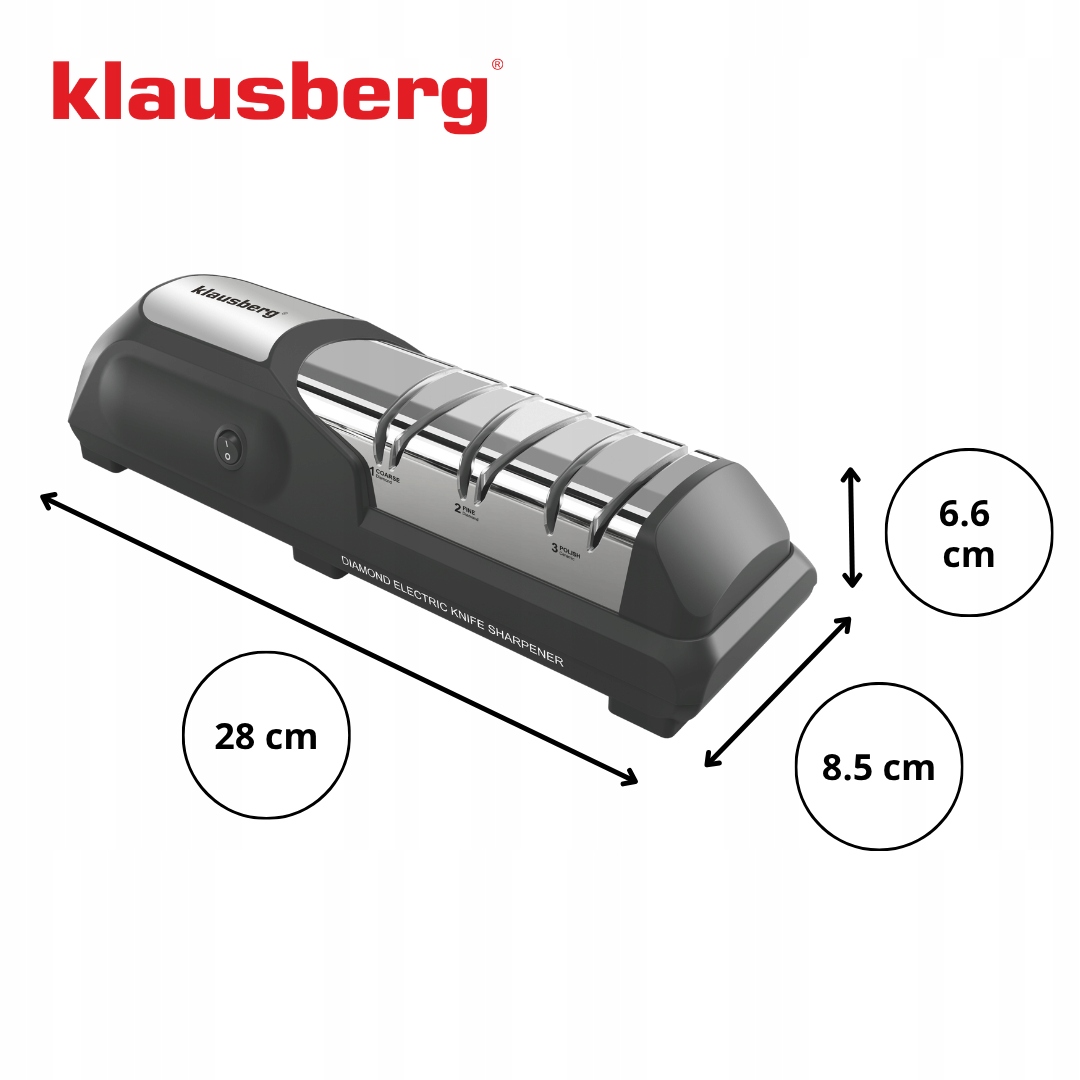 Nowoczesna elektryczna ostrzałka diamentowa Klausberg KB-7945 to niezawodne urządzenie, które pozwoli Ci w kilka chwil przywrócić idealną ostrość noży kuchennych.