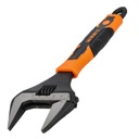 Mechanizm zębatkowy umieszczony bezpośrednio w głowicy klucza umożliwia łatwe i płynne dopasowanie szczęk do rozmiaru śruby lub nakrętki. Pomocna, grawerowana skala metryczna ułatwia szybki dobór szerokości rozwarcia.