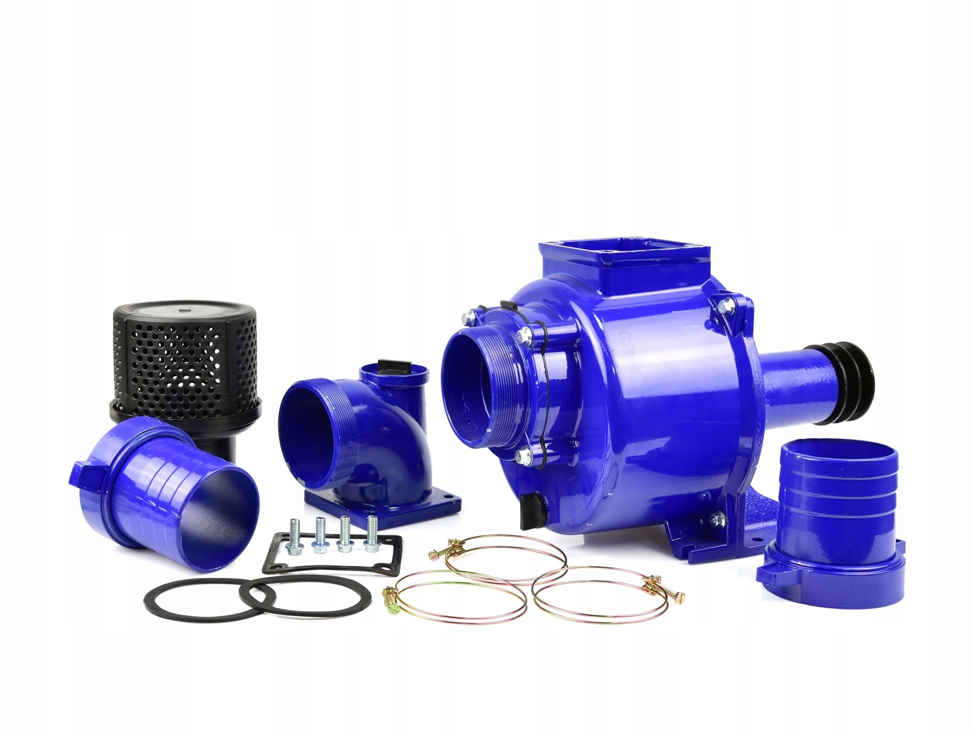 W zestawie z pompą znajdują się nasady strażackie oraz smok ssawny, uszczelki oraz zestaw opasek zaciskowych.