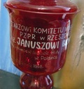 Piękny puchar szklany o wysokości ok 40 cm z pokrywką , wykonany ze szkła czerwonego / wiśniowego (to oceńcie Państwo sami) przyznawany rządzącym Elitom.