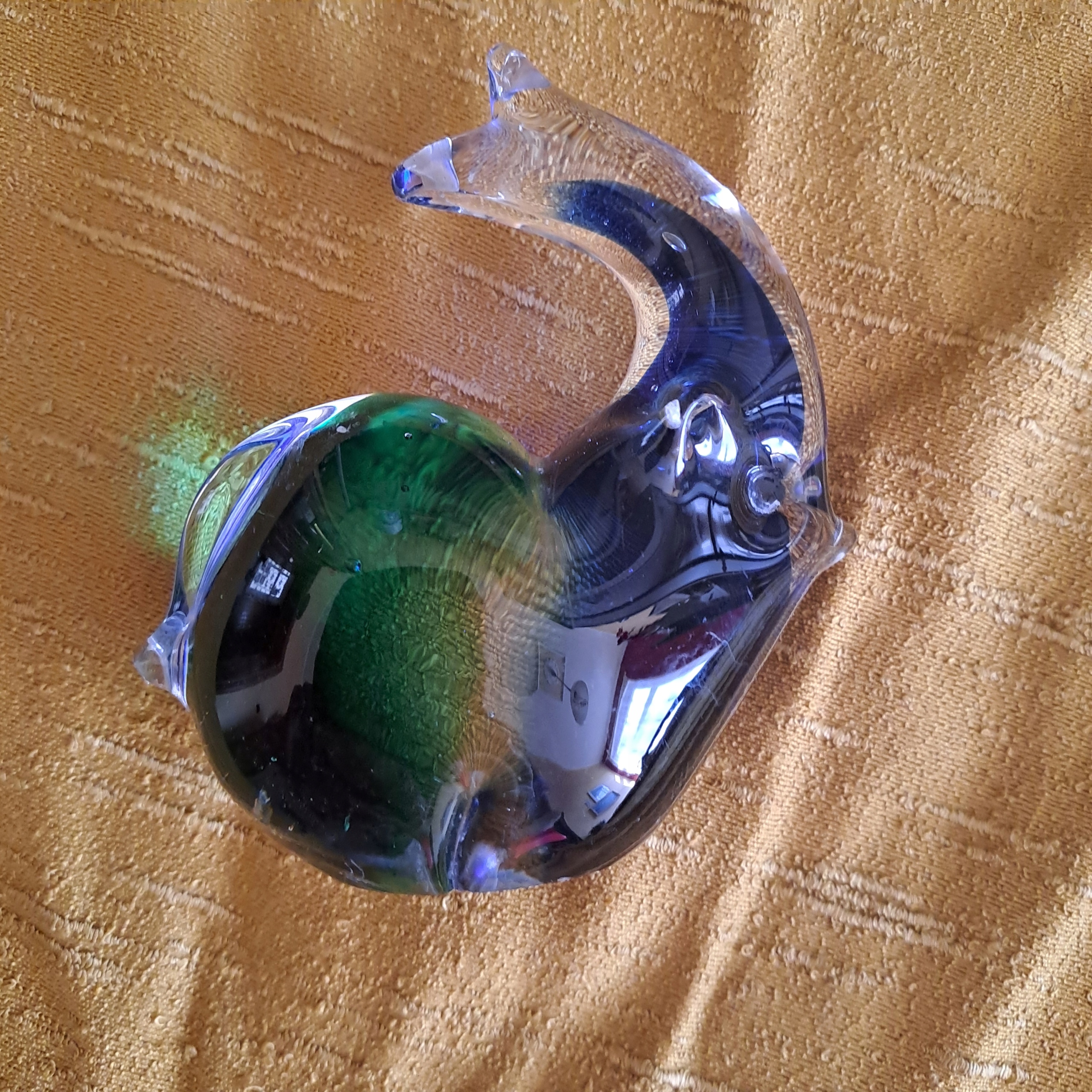 FIGURKA Z PEŁNEGO SZKŁA-DOŚĆ CIĘŻKA SZKŁO BARDZO CENIONE I DEKORACYJNE. . MIMO LAT ZACHOWANA W STANIE BARDZO DOBRYM MINUS-MA MAŁY UBYTEK SZKŁA Z BOKU PODSTAWY. . NIE JEST DUŻA WYS. -10CM, SZER.- 10CM. ZAPRASZAM.