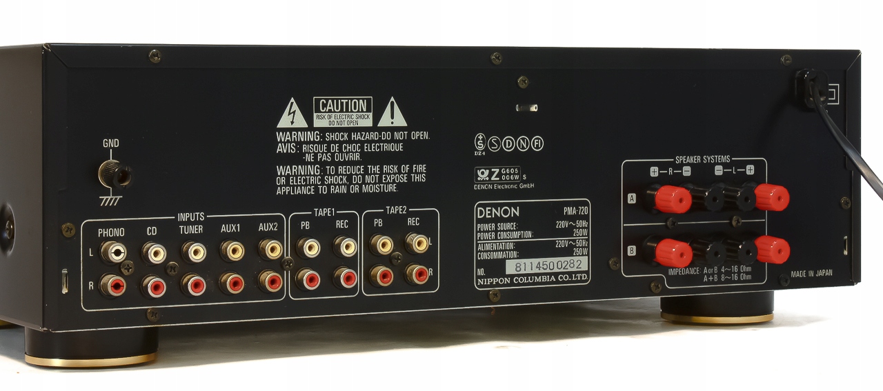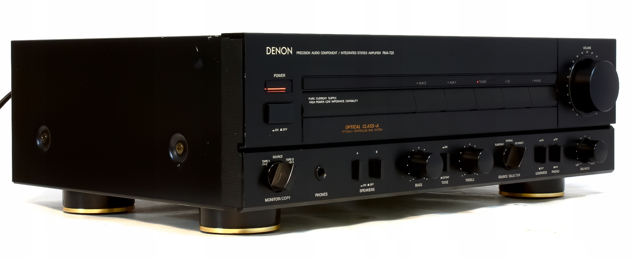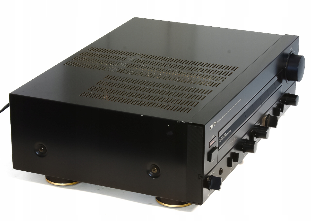 Budowa wzmacniacza klasyczna oparta na tranzystorowych końcówkach mocy, odprowadzanie ciepła skierowane ku górze, kondensatory filtrujące o dużej pojemności, potencjometry przełączniki renomowanych firm, całość wspierana solidnym transformatorem!!! Jest to doskonale znany przez wszystkich miłośników audio o zacięciu audiofilskim wzmacniacz firmy która do dziś nie splamiła swego wizerunku masową produkcją. Urządzenie wywodzi się z niewątpliwie jednej z najbardziej udanych klasycznych serii , nie tylko pod względem brzmieniowym ale również wizualnym. DENON to bezpośredni rywal kultowych firm tj. NAD, LUXMAN i jak się okazało jeden z nielicznych który stawił im czoła – cenowo i brzmieniowo ... Brzmienie jak przystało na wzmacniacz audio , a nie przetwornice prądu … czyli liniowa charakterystyka , czystość , dobra scena i stereo czyli to co powinien reprezentować przyzwoity wzmacniacz. Odnośnie mocy to wiadomo… 2 x 80W w wydaniu tej firmy to rzeczywista wartość, z ciekawości proszę porównać jaką moc oferują niższe modele. Zapraszam do zakupu!