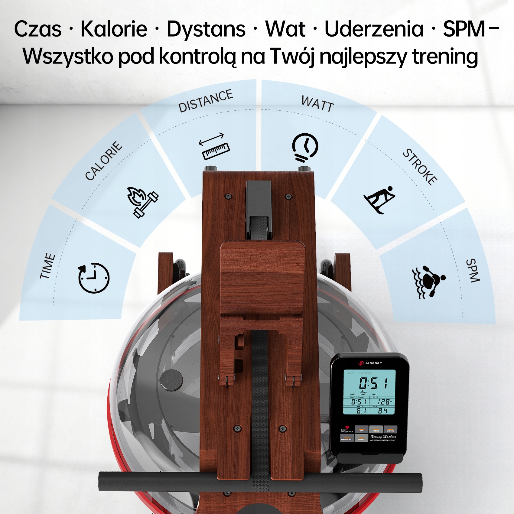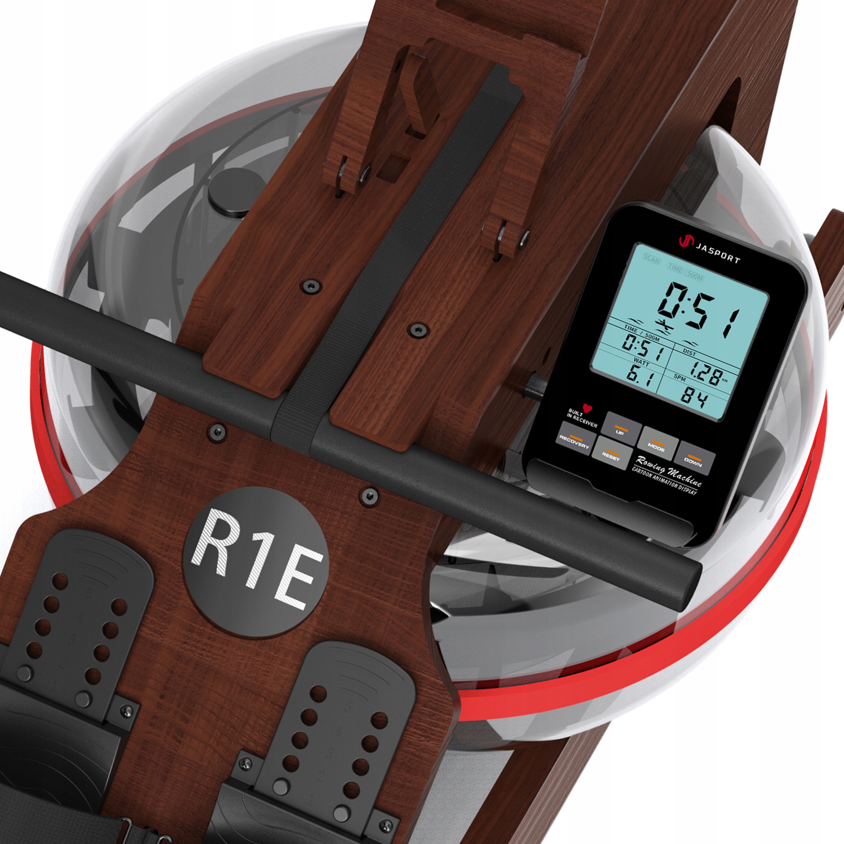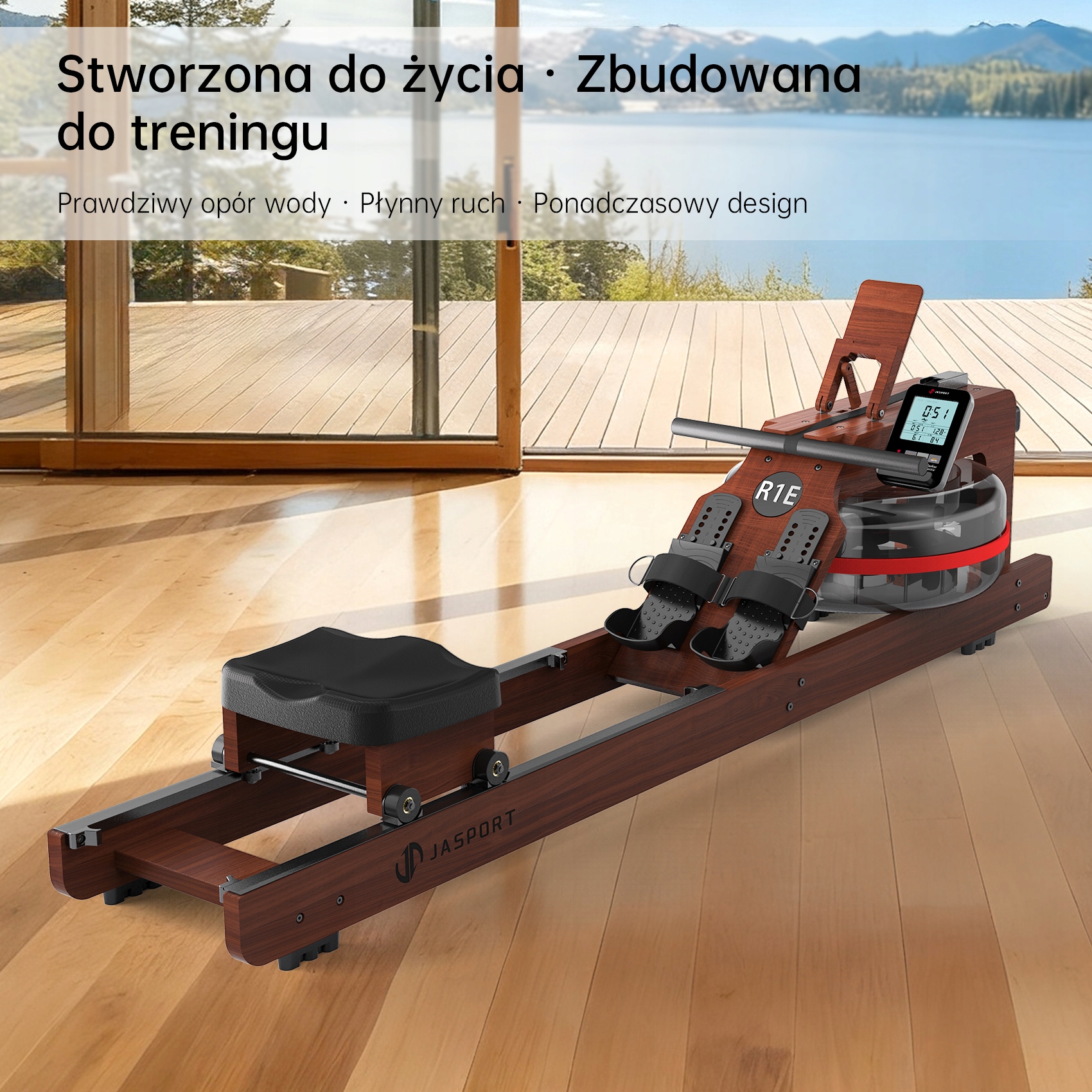 Wioślarz wodny JASPORT R1E to jakość, zrównoważony rozwój i wydajność. Jest zgodny z EN ISO 20957-1 i EN ISO 20957-7, działa na 2 × baterie AA (nie dołączone) i oferuje bezpieczne, przyjazne dla stawów szkolenie dla całej rodziny. Niezależnie od tego, czy jako domowe urządzenie fitness, drewniany wioślarz wodny z Bluetooth i Kinomap, czy cichy trenażer domowy całego ciała — JASPORT R1E jest idealnym wyborem dla realistycznego, wygodnego i stale motywującego wiosłowania.