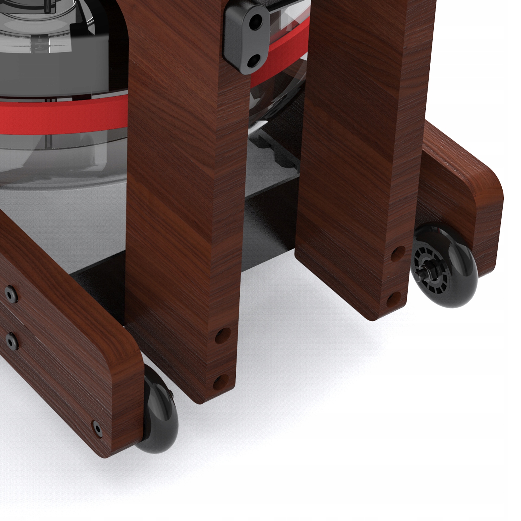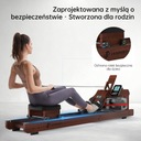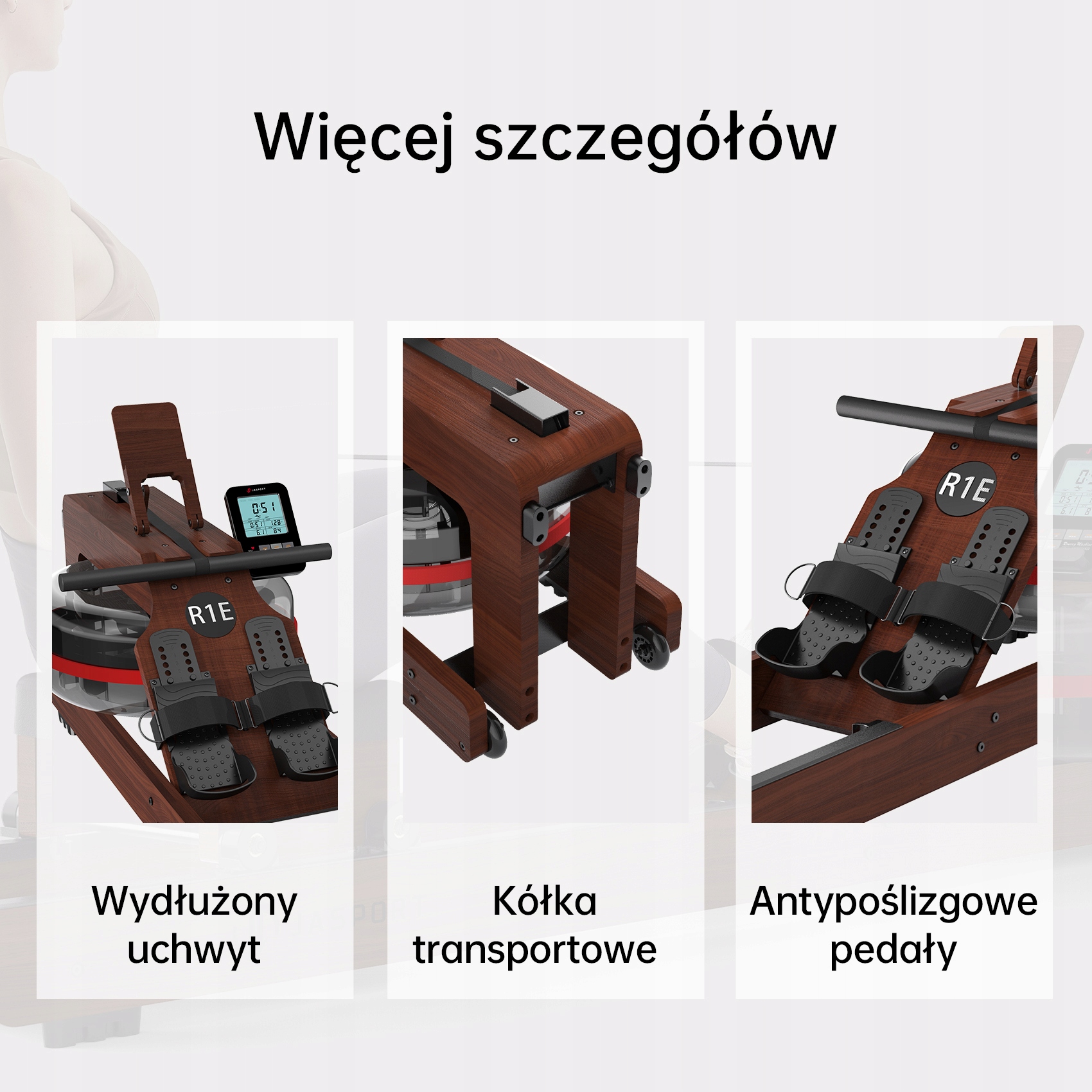 Ergonomicznie ukształtowane siedzisko, ciche rolki PU i antypoślizgowe pedały nożne zapewniają stabilny, wygodny i bezpieczny ruch wiosłowania. Trening pozostaje niemal bezgłośny, dzięki czemu idealnie nadaje się do salonu, domowej siłowni czy biura. Dzięki solidnej konstrukcji dwuszynowej wioślarz wspiera użytkowników do 150 kg i 200 cm wysokości. Zintegrowane kółka transportowe umożliwiają bezproblemowe przemieszczanie maszyny po treningu bez konieczności opróżniania zbiornika.