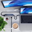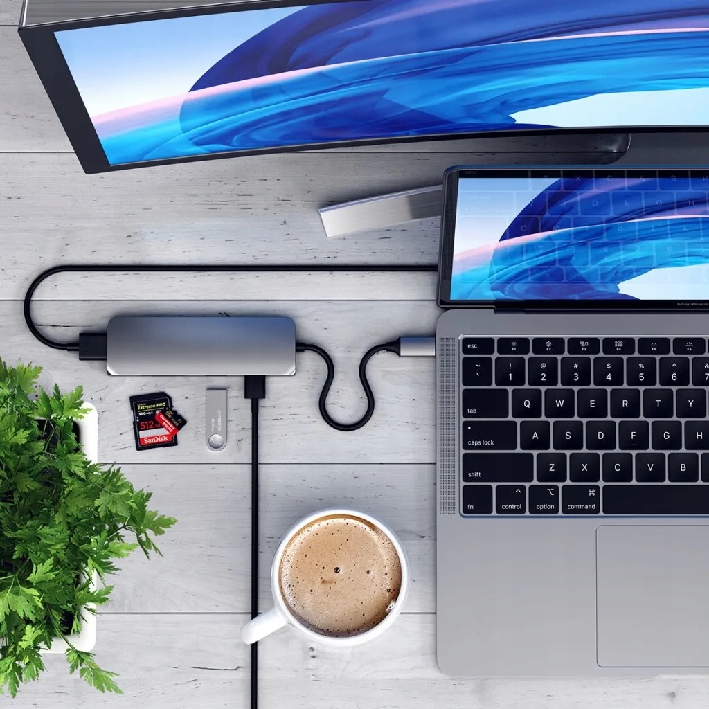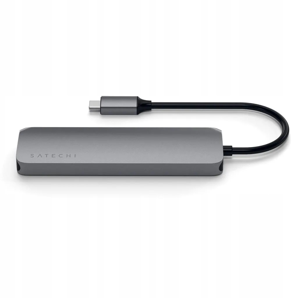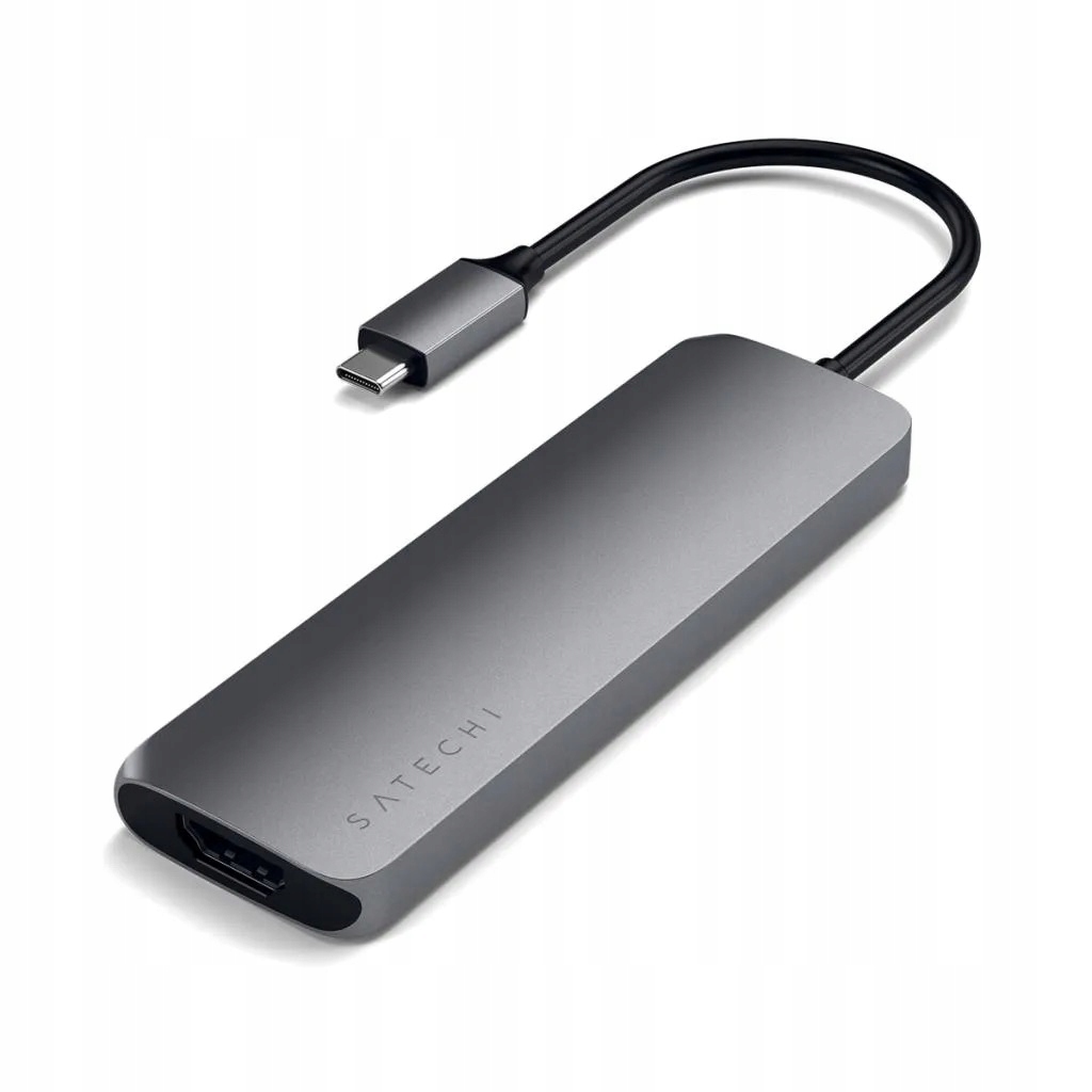 Adapter Satechi Aluminum USB-C Multiport Pro to kompleksowe rozwiązanie zapewniające płynną łączność. Obejmuje port USB-A 3.0, port ładowania USB-C, wyjście HDMI 4K oraz sloty kart SD/microSD. Dzięki tym portom możesz podłączyć wszystkie niezbędne urządzenia przy użyciu jednego portu USB-C w MacBooku.