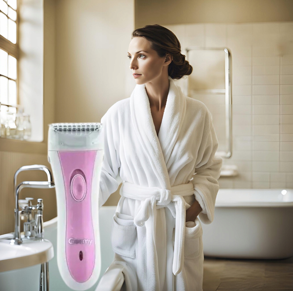 ➡️ Zrelaksuj się w wannie lub pod prysznicem! Golarka jest w pełni wodoodporna, dzięki czemu możesz jej używać w wilgotnym środowisku bez obaw o uszkodzenie. Po skończonej depilacji wystarczy przepłukać ją pod bieżącą wodą – gotowa do kolejnego użycia w kilka sekund.
