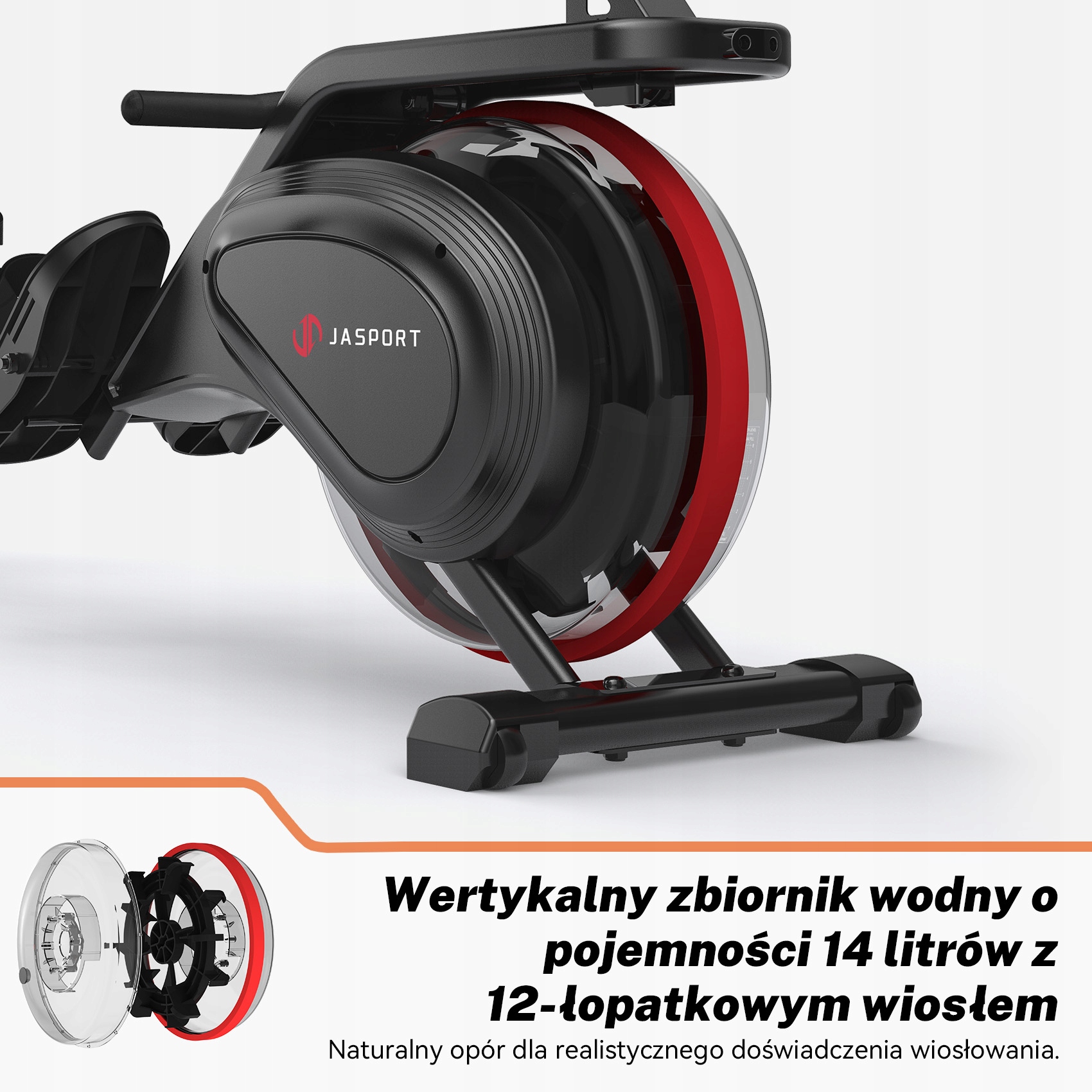 JASPORT RE3 Wioślarz wodny to wydajne domowe urządzenie fitness, które zapewnia realistyczne wrażenia z wiosłowania dzięki naturalnej wodoodporności. Jego 14-litrowy pionowy zbiornik na wodę z 12-łopatkowym wiosłem tworzy płynny, stały opór dla płynnego i stabilnego treningu całego ciała. Pionowa konstrukcja zbiornika efektywnie wykorzystuje przestrzeń, zapobiega wyciekom i idealnie nadaje się do małych mieszkań, domowych siłowni lub sal fitness.