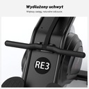 Ten wioślarz łączy w sobie solidną konstrukcję, cichą pracę i ruch przyjazny dla stawów. Stalowa rama zapewnia wysoką stabilność przy maksymalnej nośności 150 kg. Ergonomiczne siedzisko, antypoślizgowe podwójne uchwyty i cichy system szyn zapewniają wygodne i skuteczne wiosłowanie — idealne do budowania siły, treningu wytrzymałościowego i codziennych treningów w domu.