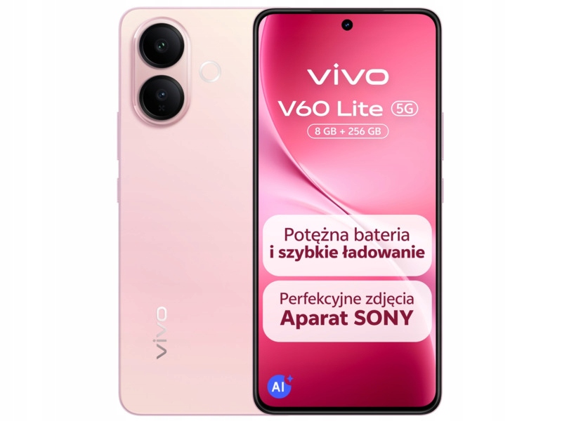Odkryj elegancki i smukły smartfon Vivo V60 Lite 5G. To urządzenie zostało wyposażone w potężną baterię z technologią szybkiego ładowania FlashCharge 90W, wyraźny ekran AMOLED, zaawansowany aparat SONY, specjalne oświetlenie portretowe i wydajny procesor wspierający funkcje AI. V60 Lite 5G to więcej niż prezent!