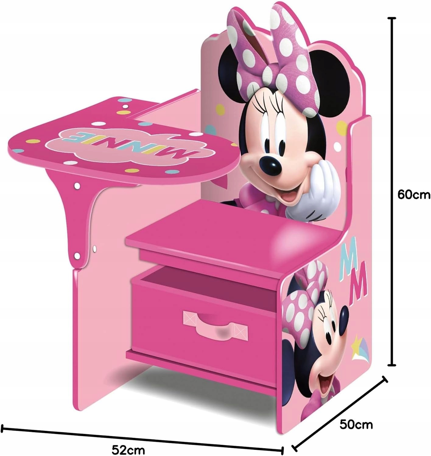 Biurko z ulubionymi postaciami bajkowymi. Jest idealnym miejscem do pracy i zabawy dla Twojego dziecka. Dziecko ma wszystko pod ręką. Siedzenie służy także jako schowek na zabawki, książki itp.