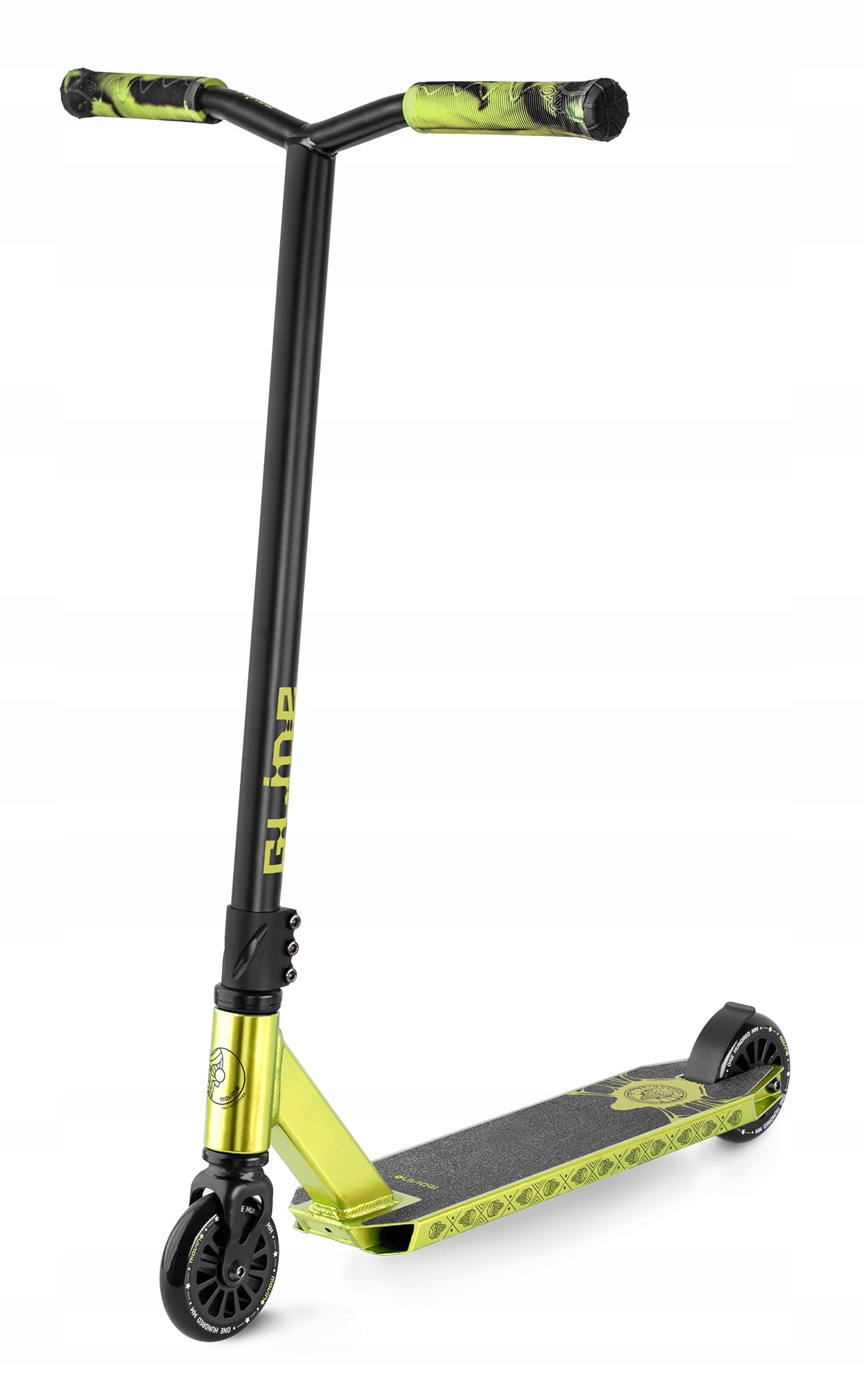 Hulajnoga wyczynowa Movino Glide doskonale nadaje się do nauki tricków i ewolucji. Posiada wzmocniony podest z aluminium 6061 , kierownicę 360° ze stali o długości 58 cm i szerokości 53 cm, najwyższej klasy łożyska ABEC-9 Carbon oraz system hamulcowy FLEX FENDER. Podest i rama hulajnogi Movino Glide w 100% wykonane są z aluminium, co gwarantuje dużą wytrzymałość i trwałość łączeń.