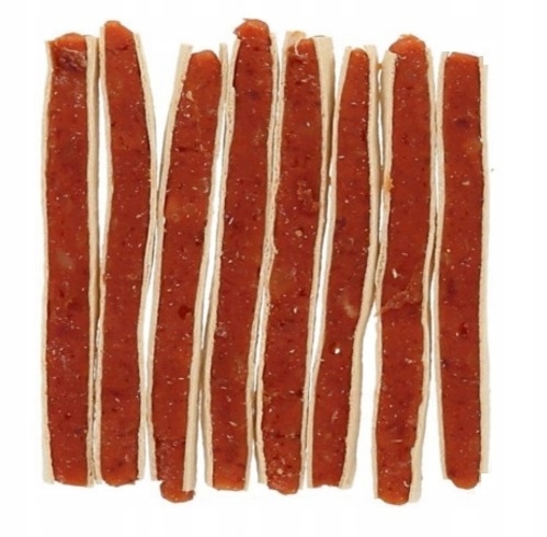 Skład: mięso z kaczki 60,5%, mięso z ryby 20%, mąka ryżowa 5%, mąka pszenna 4%, skrobia 5%, gliceryna 5%, sól 0,5%