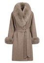Futro wykonane z miękkiej, ciepłej wełny, zapewnia nie tylko komfort termiczny, ale i niezwykle szykowny wygląd. Kołnierz oraz mankiety wykończone zostały naturalnym futrem z lisa, dodając całości luksusowego charakteru i przyciągając spojrzenia.