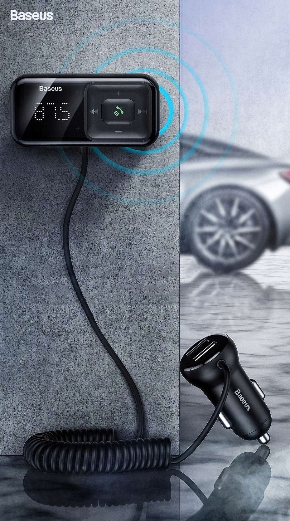 Aby wznieść wygodę użytkowania oraz bezpieczeństwo na wyższy poziom, Baseus stworzył ładowarkę samochodową z transmiterem FM. Umieść ją w gnieździe zapalniczki, a uzyskasz 2 porty USB do ładowania oraz możliwość odtwarzania muzyki i przesyłania jej bezpośrednio do radia samochodowego z karty microSD lub smartfona.