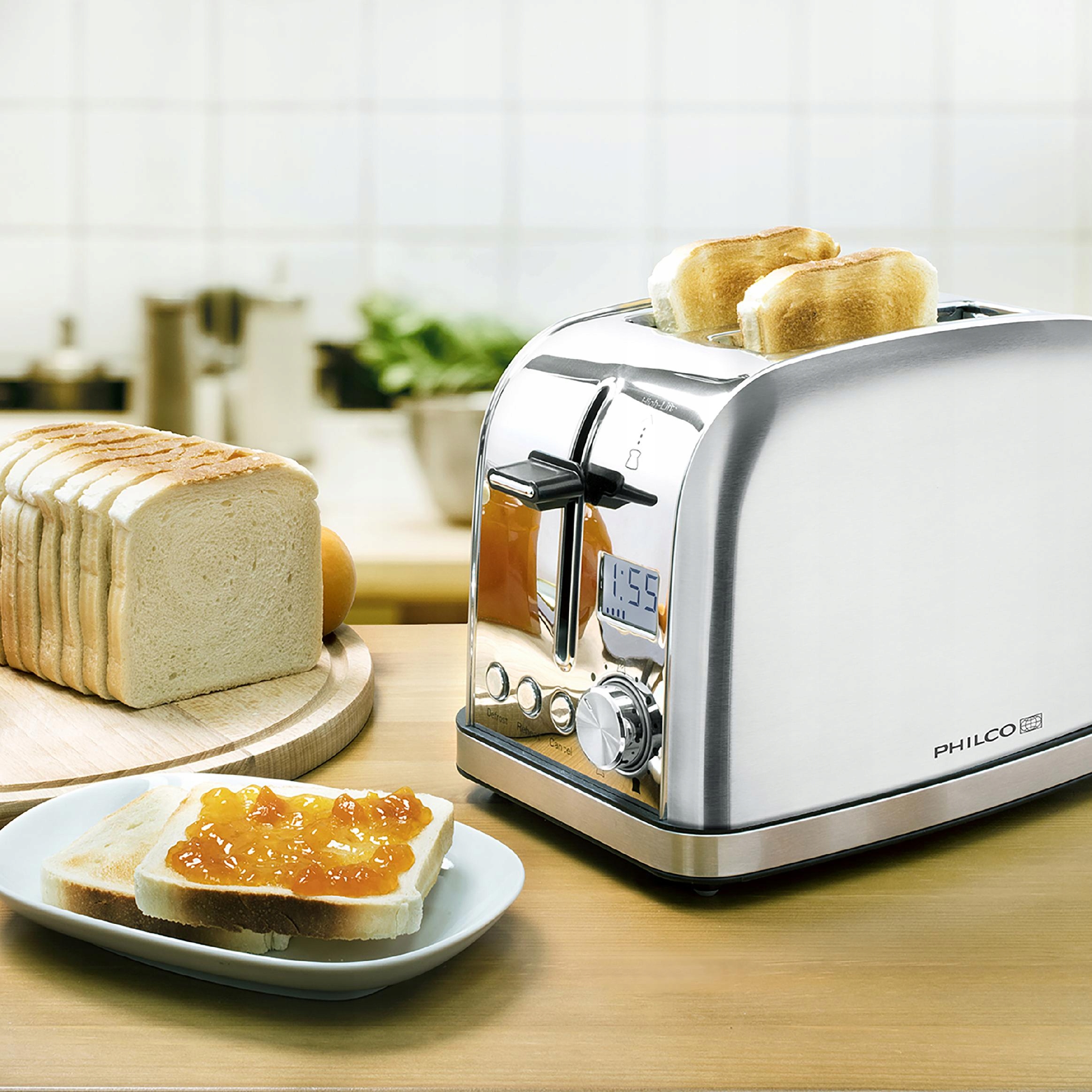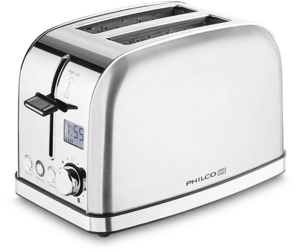 Zwiększony wyrzut kromek chleba po zakończonym pieczeniu i specjalny podnośnik ułatwia wyciągnięcie pieczywa i zwiększa bezpieczeństwo, minimalizując ryzyko poparzenia, gdyż nie trzeba dotykać rozgrzanego urządzenia. Toster Philco PHTA 4010 posiada intuicyjny panel sterowania i podświetlane przyciski, co ułatwia obsługę i umożliwia przygotowanie idealnych tostów nawet bez zapalania głównego światła. Z kolei antypoślizgowe nóżki gwarantują stabilne ustawienie urządzenia.