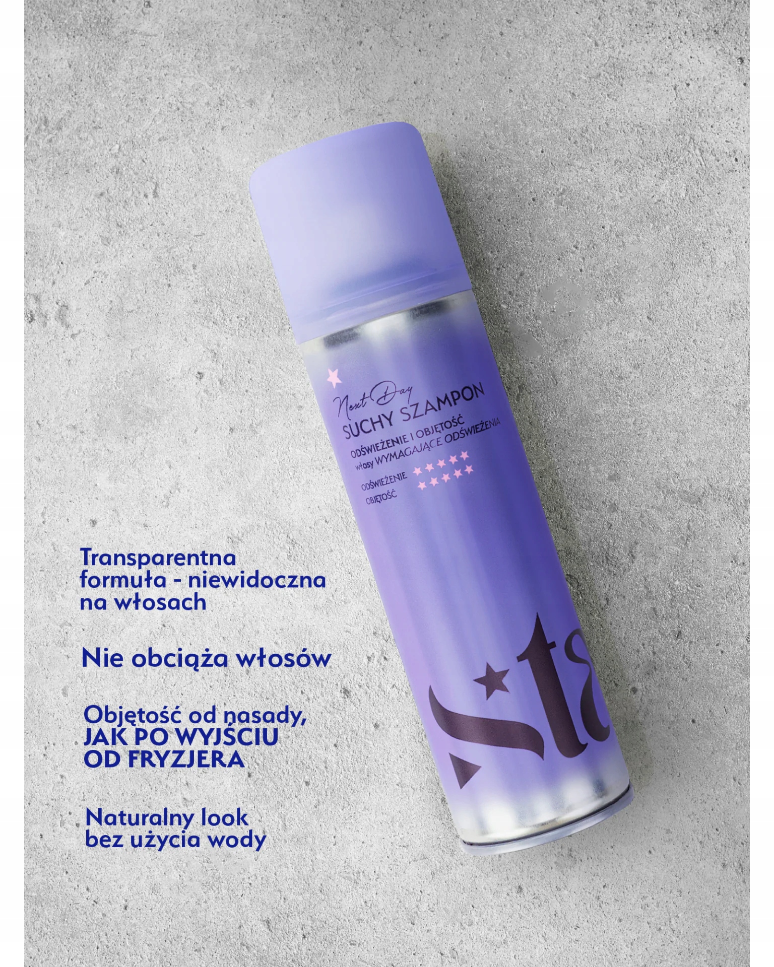 Lekka, nieobciążająca formuła suchego szamponu Next Day zapewnia efekt natychmiastowego