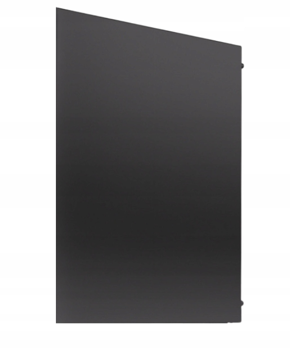 Panel wykonano z wysokiej jakości stali o grubości około 0,75 mm, pokrytej czarną, matową farbą proszkową. Taka konstrukcja gwarantuje wyjątkową sztywność, odporność na zarysowania oraz doskonałe dopasowanie kolorystyczne do reszty obudowy. Gładka, jednolita powierzchnia podkreśla elegancki charakter komputera i tłumi hałas generowany przez podzespoły.