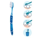 Szczoteczka GUM PRO Medium została wyposażona w innowacyjne dwupoziomowe włókna ustawione pod kątem, które zostały zaprojektowane tak, aby precyzyjnie dopasowywać się do kształtu zębów i skutecznie usuwać płytkę nazębną oraz resztki jedzenia z trudno dostępnych miejsc.