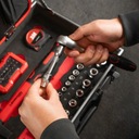 Nasadki wykonane ze stali chromowo-wanadowej gwarantują trwałość i odporność na zużycie. W połączeniu z grzechotką umożliwiają płynną pracę bez zdejmowania klucza, co przyspiesza naprawy i zwiększa wygodę użytkowania.