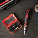 30 bitów o różnych końcówkach pozwala dopasować narzędzie do każdego rodzaju śruby, a wysokiej jakości stal węglowa zapewnia trwałość.