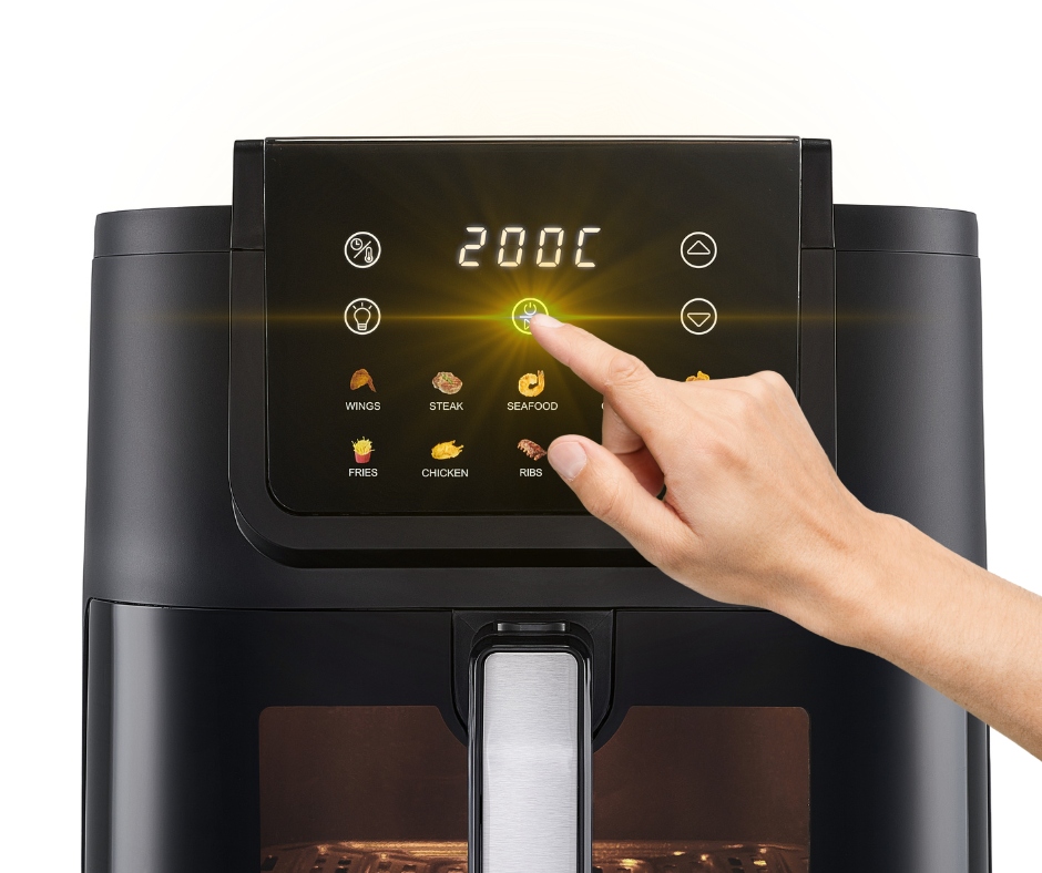 Kolorowy, obrazkowy wyświetlacz we frytkownicy beztłuszczowej to połączenie nowoczesnego designu z wyjątkową wygodą obsługi. Dzięki czytelnym ikonom i ilustracjom użytkownik może intuicyjnie wybrać odpowiedni program – bez konieczności wertowania instrukcji czy znajomości języka. To rozwiązanie idealne zarówno dla początkujących, jak i dla osób starszych, które cenią prostotę i przejrzystość. Wyświetlacz ułatwia szybki dostęp do różnych trybów pracy, pozwala kontrolować czas i temperaturę pieczenia, a jednocześnie nadaje urządzeniu nowoczesny, elegancki wygląd, który świetnie komponuje się z każdą kuchnią.