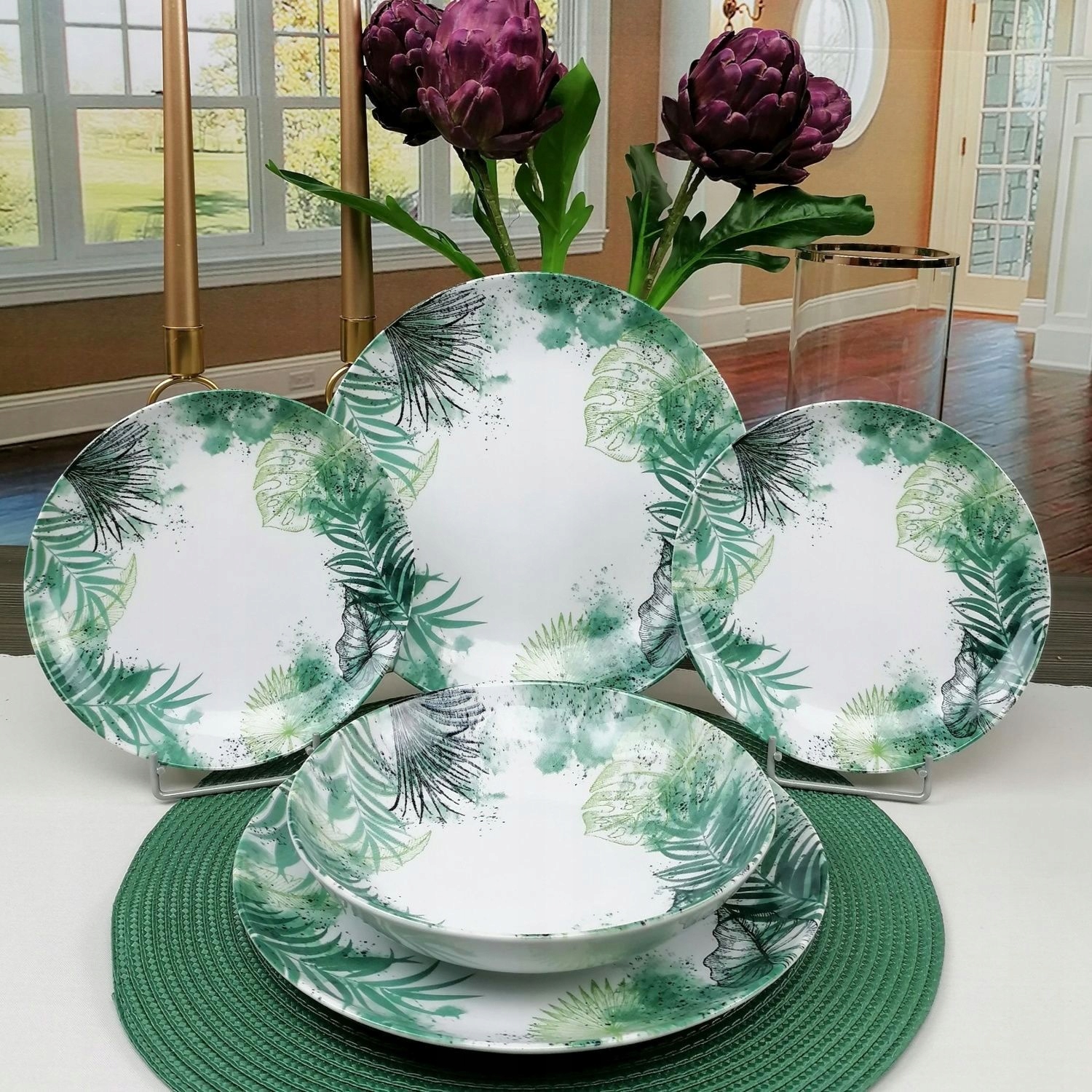 LUBIANA KERAJET ZIELONY LIŚCIE SERWIS OBIADOWY 18 SZTUK