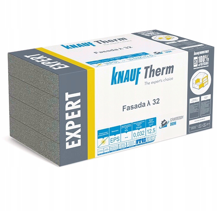 Styropian Knauf Therm Expert Fasada EPS λ 32 to grafitowe płyty termoizolacyjne o obniżonym współczynniku przewodzenia ciepła, przeznaczone do ocieplania elewacji metodą lekką mokrą (ETICS).